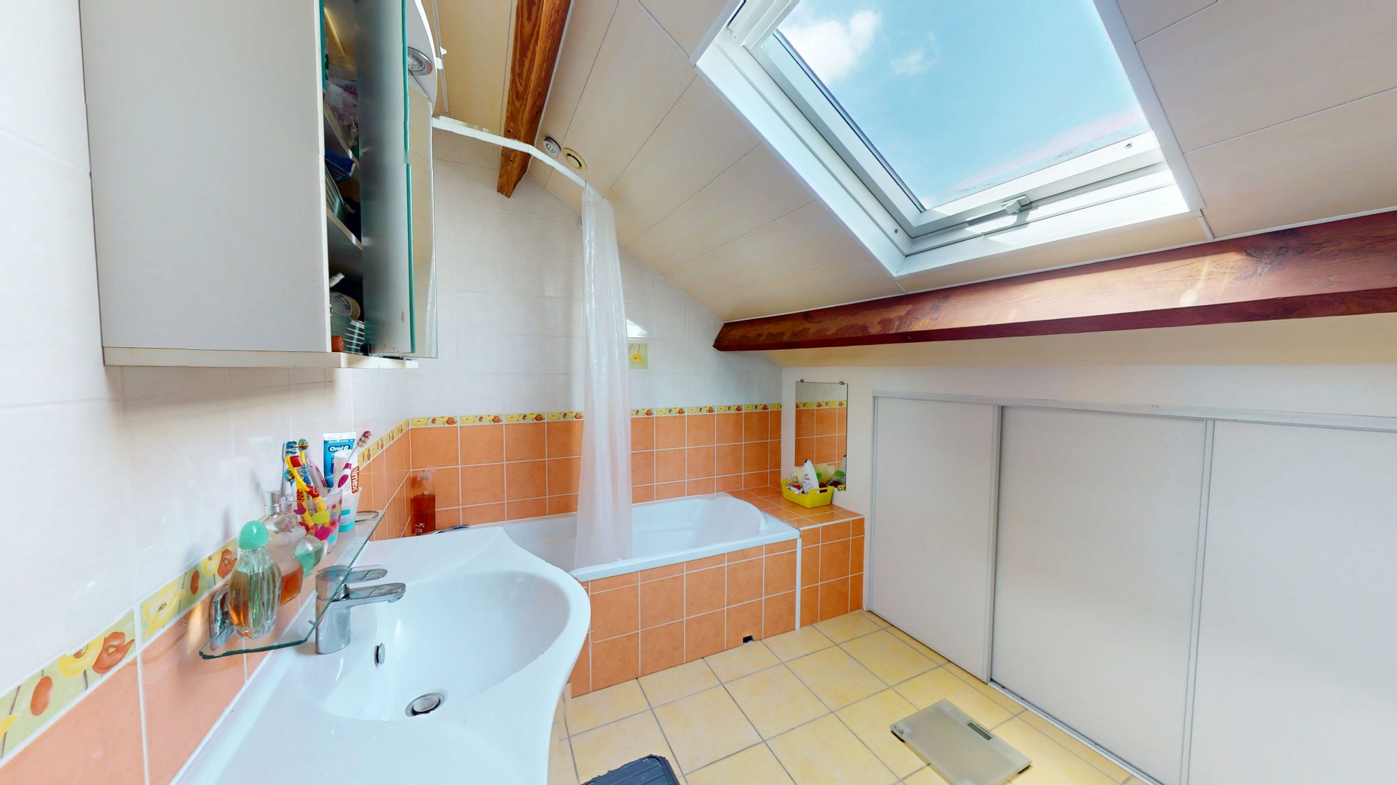 - à l’étage : palier, salle de bains avec WC, trois chambres.