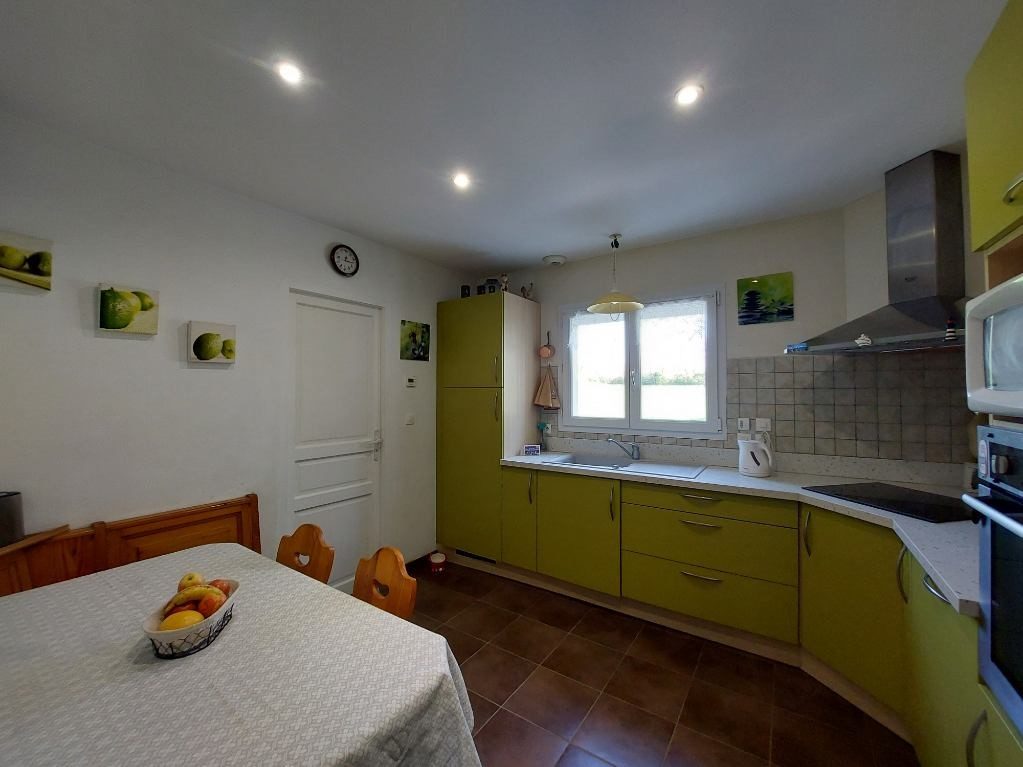 La maison est composée au rez de chaussée d'une entrée avec ses placards de rangement, d'une pièce de vie avec un insert qui dessert une véranda, une cuisine équipée et aménagée, une buanderie, une chambre avec sa salle d 'eau privative, un toilette.
