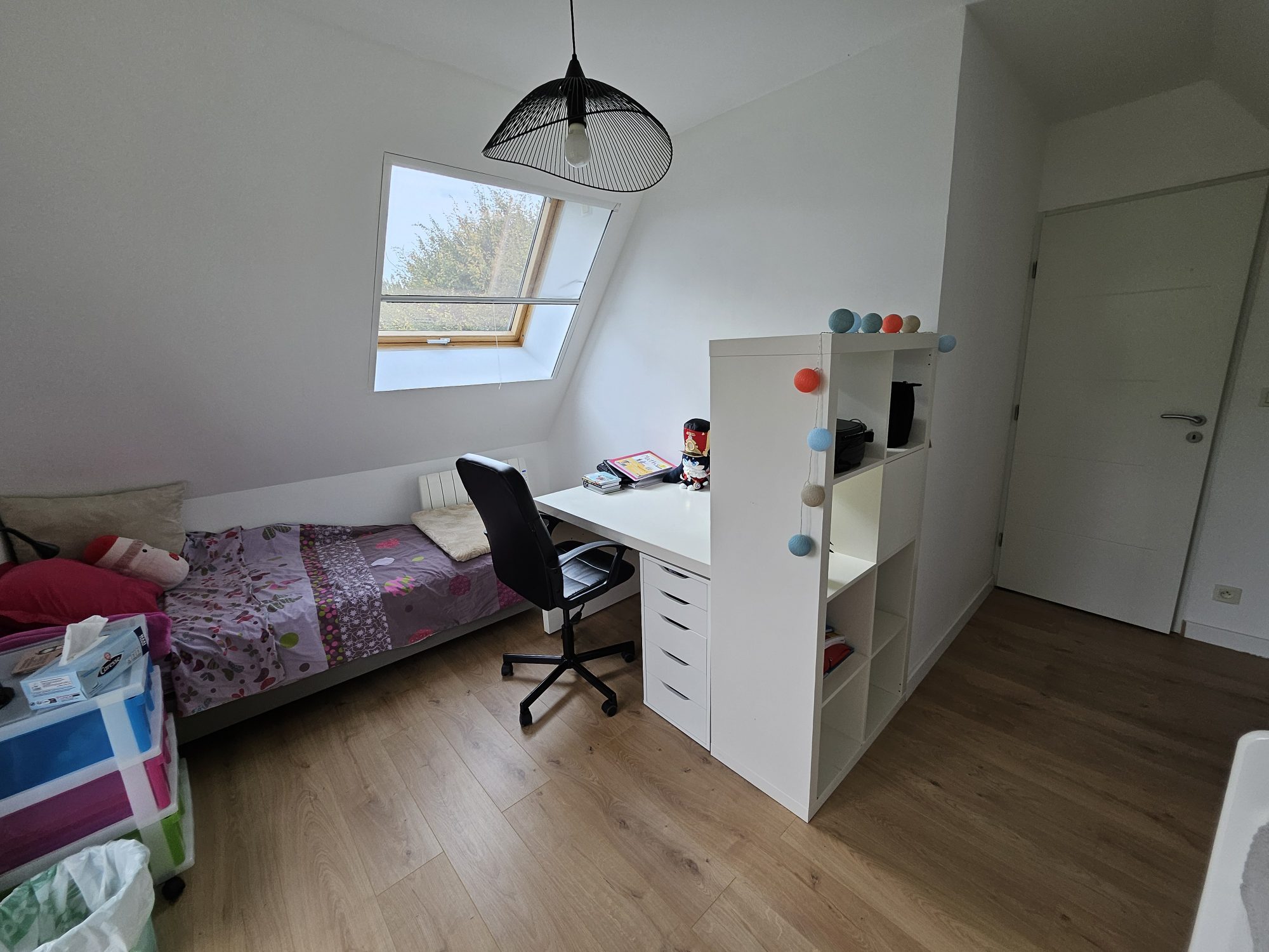 Cuisine aménagée-équipée, un salon ouvert sur séjour avec vue sur le jardin et terrasse, salle de douche, WC séparé, chambre.