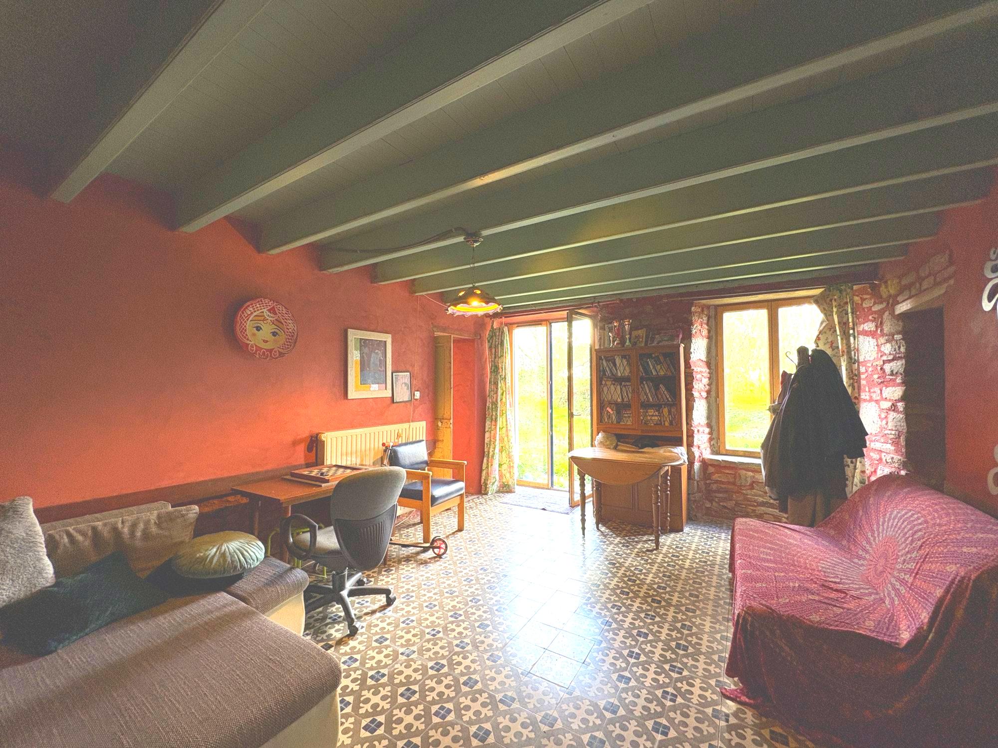 Maison ancienne en pierre comprenant, au rez-de-chaussée, une pièce de vie avec cuisine, un salon, une salle d’eau, une buanderie/chaufferie ainsi qu’un WC.
