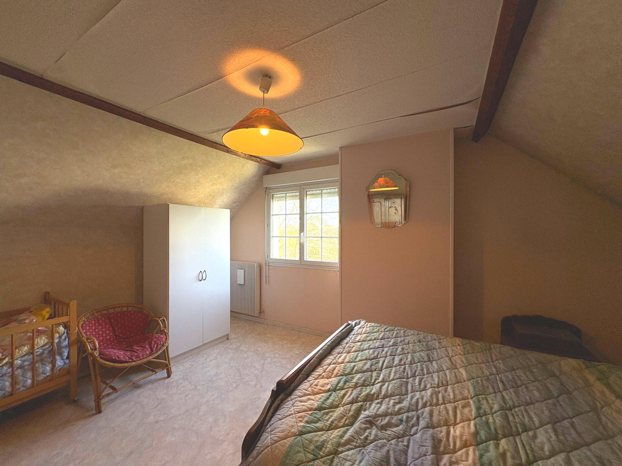 A l'étage : un palier desservant deux chambres, une salle de bains et des WC.
