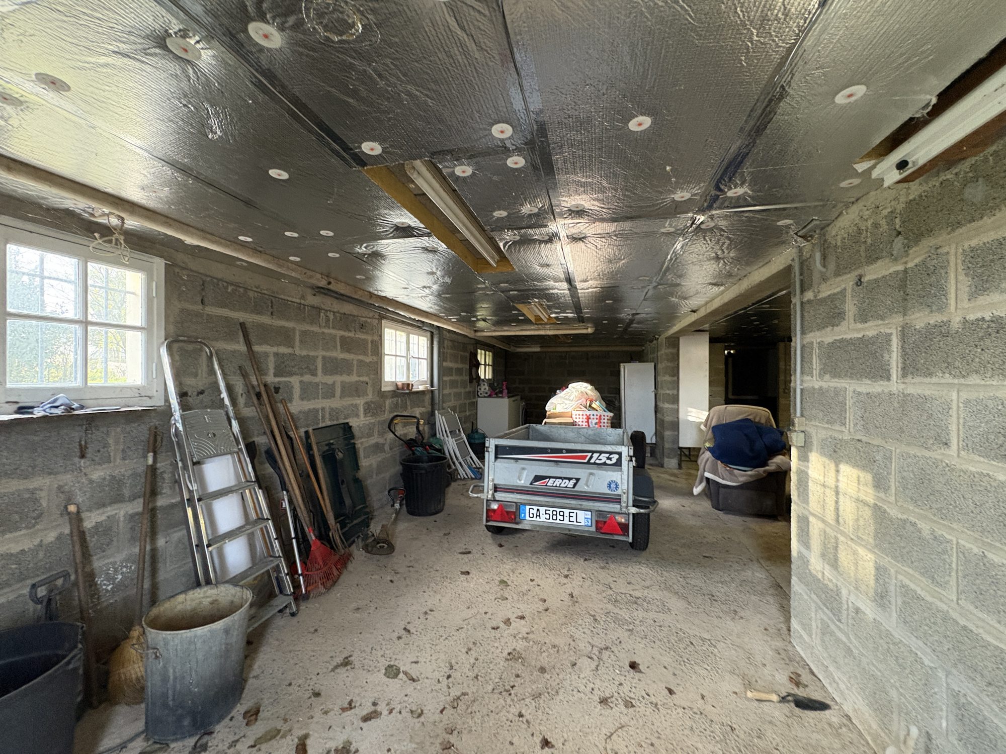Au sous-sol (complet): partie garage, partie atelier et coin buanderie avec évier.