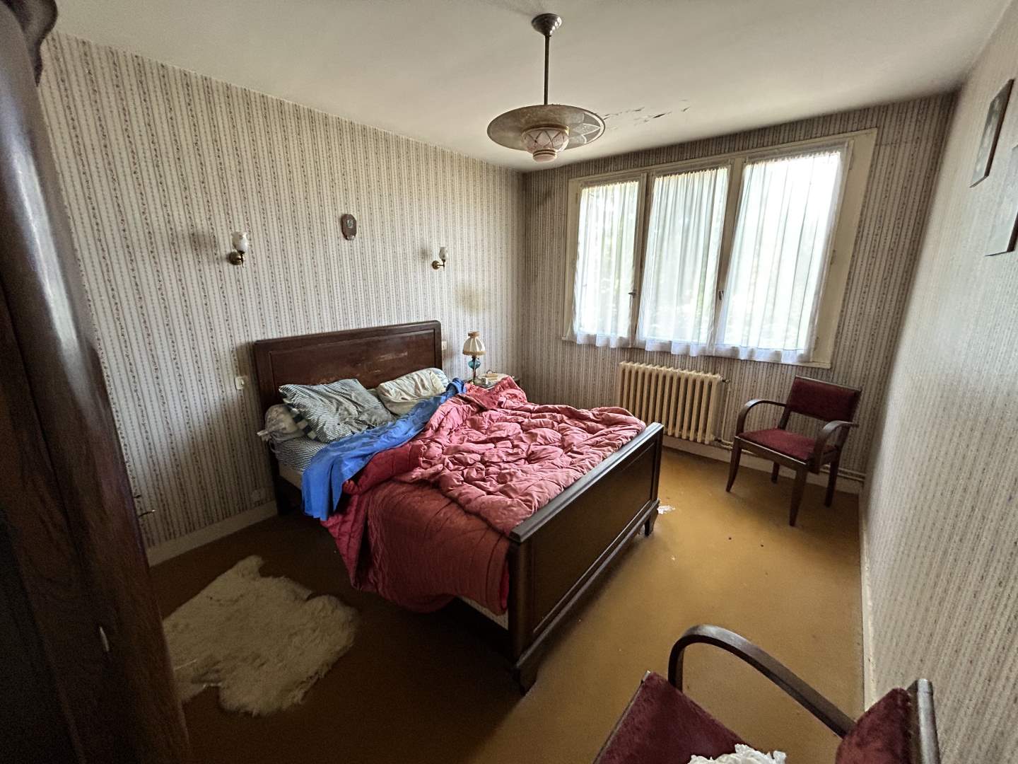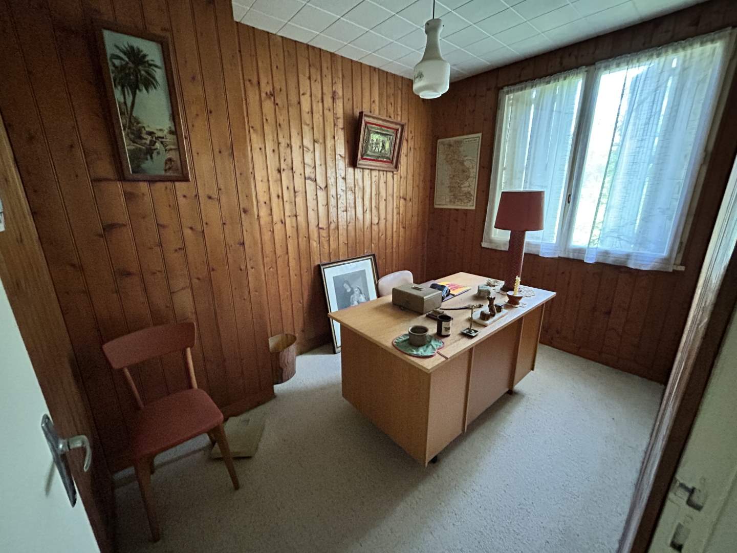 À l'étage : trois chambres, un bureau, une salle de bains et des WC séparés.