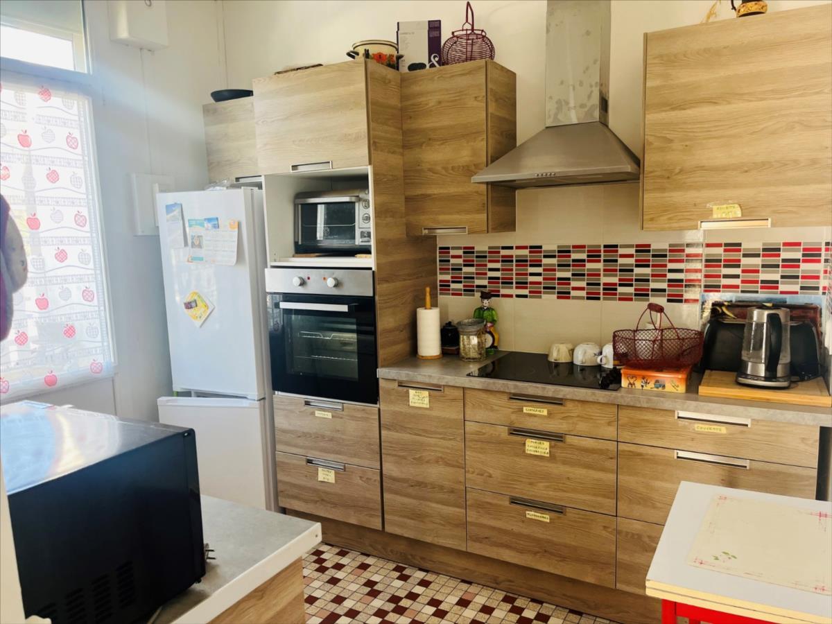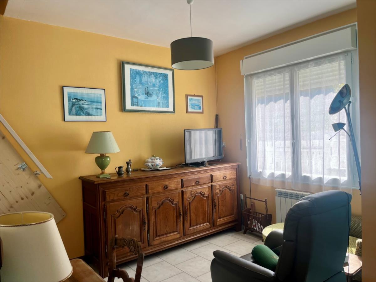 OUISTREHAM RIVA BELLA - Une maison de trois pièces comprenant : une entrée avec placards, un séjour-salon, une cuisine aménagée, une chambre et une salle d'eau avec wc.A l'étage une chambre.Un cabanon de jardin. Possibilité de stationner une voiture dans la cour. Commerces  à 100  mètres et mer à 300 mètres.