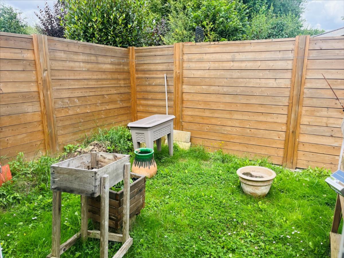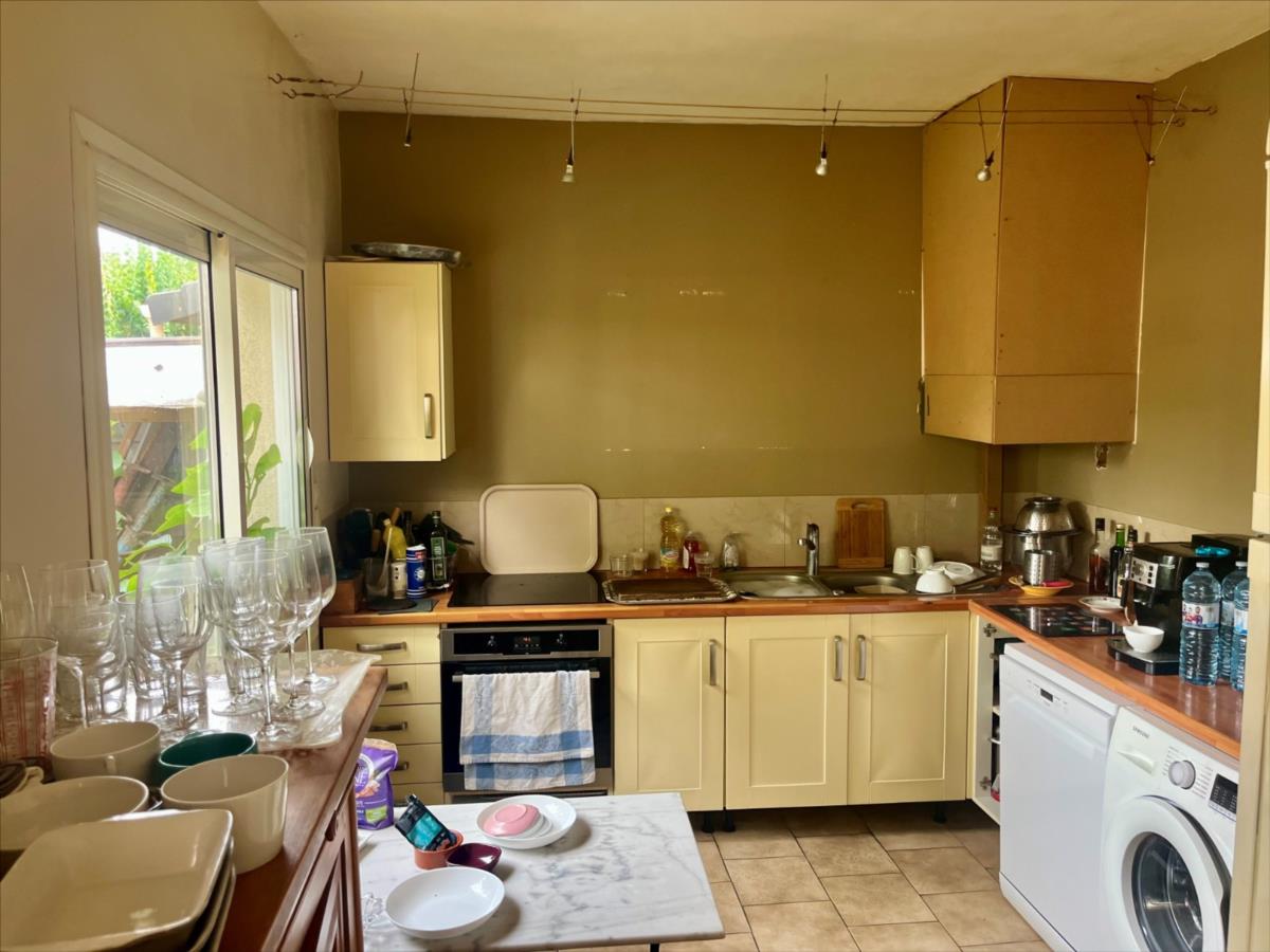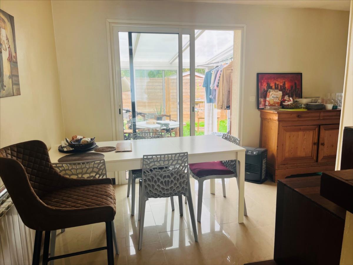 Au cœur d'Epron, une maison de ville comprenant au rez-de-chaussée : une entrée, un pièce de vie avec un séjour-salon avec cheminée et une cuisine aménagée, une véranda, une salle de bains, un wc. A l'étage, deux chambres.Un jardin clos avec un cabanon de jardin
