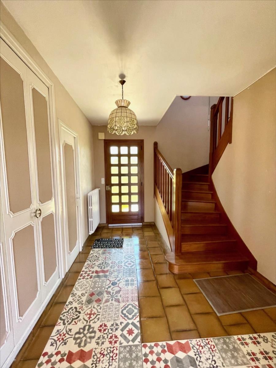 Dans un quartier au calme, maison lumineuse d'environ 150 m2 sur sous-sol complet et composée d'un hall d'entrée avec placards, wc, cuisine aménagée, vaste salon-séjour avec cheminée et orienté sud-est, une chambre avec salle de douche.A l'étage : couloir desservant trois grandes chambres avec placards et greniers, une salle de bains-wc.