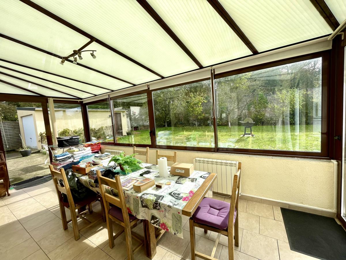 - un vaste salon/séjour avec cheminée ouvrant sur une véranda lumineuse,