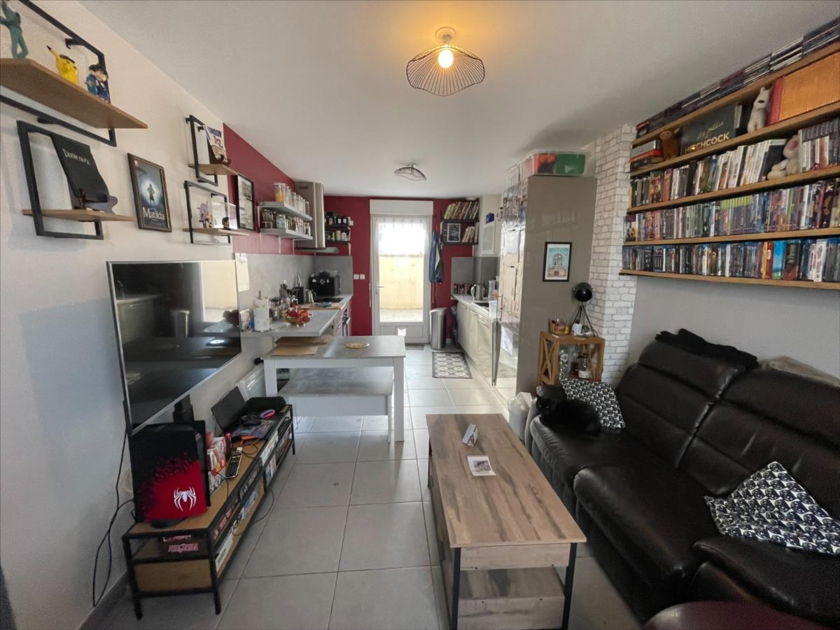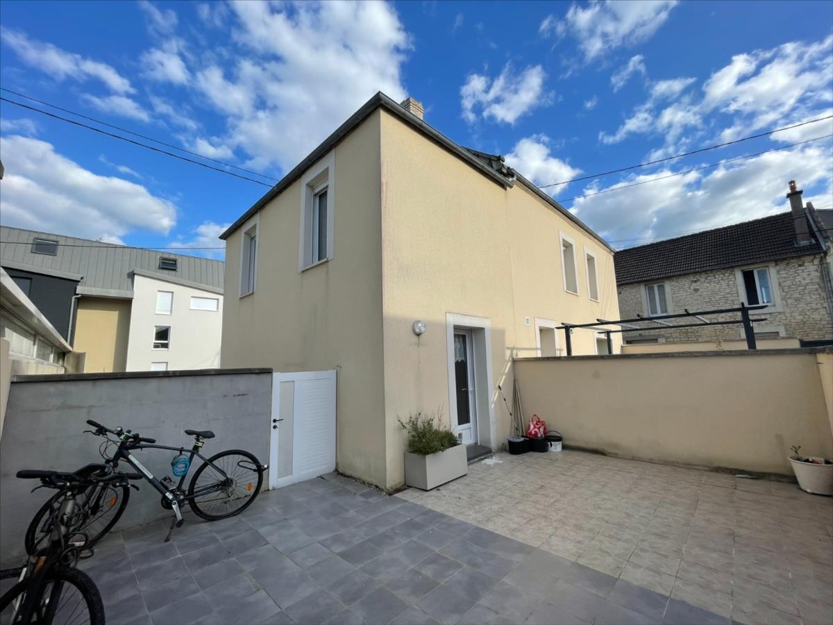 NOUVEAU ' Chez des Notaires à Mes Côtés', Aux Portes de CAEN, Une maison de ville entièrement rénovée (2014) composée au rez-de-chaussée : d'une entrée, pièce de vie ouverte sur une cuisine aménagée accès terrasse clos mur, un wc.A l 'étage : deux chambres, salle de bains.Combles aménagé au dessus. Terrasse et courette devant. Vendu libre Ou possible investissement locatif.