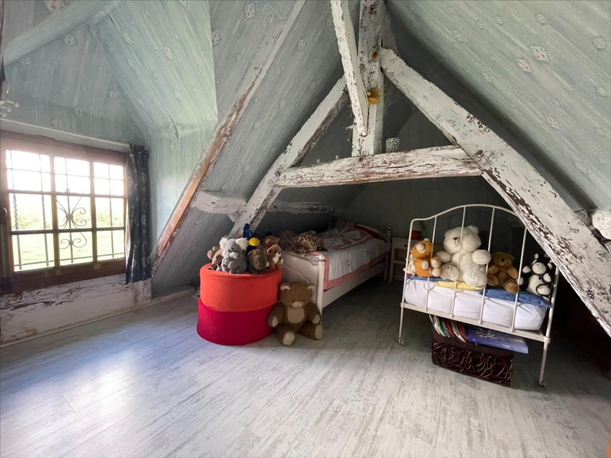 A l 'étage 3 petites chambres mansardées. Une cave partielle ( laverie/ buanderie).