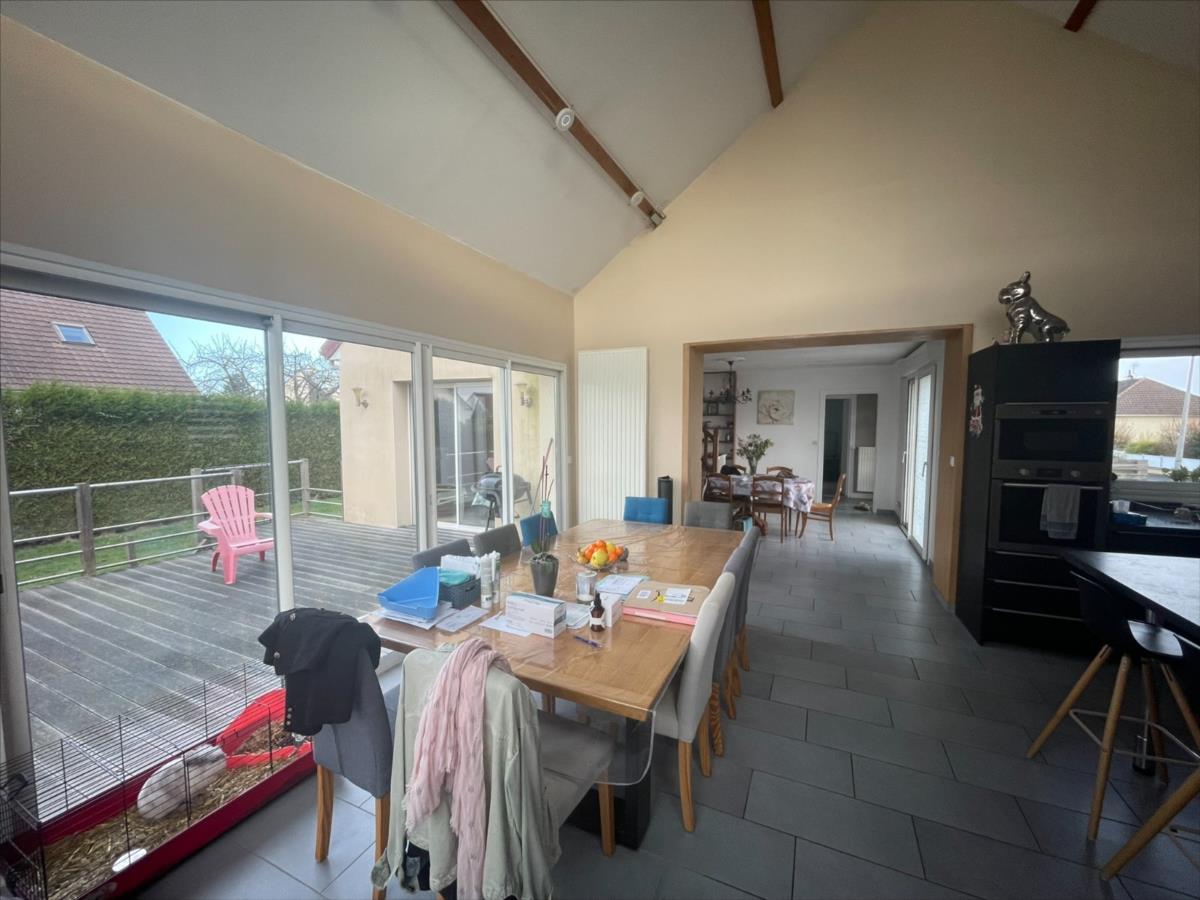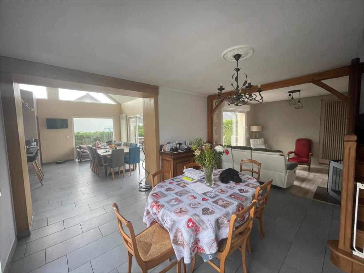 NOUVEAU 'Chez des Notaires à Mes Côtés'A l'entrée de DOUVRES côté CAEN et à 5 min du centre ville.Une maison individuelle de 1975 rénovée avec une extension de 2010.Surface env 110 m², sur un Sous-sol complet ( Garage - atelier - cave - wc- buanderie)Au rez-de-chaussée : salon avec cheminée (env 25 m²), un cuisine aménagée équipée accès terrasse et arrière cuisine (env 30m²), dégagement : 2 chambres, wc, salle d'eau, bureau.A l'étage : 2 chambres mansardées.Chauffage gaze de ville et Ballon d'eau Thermodynamique. Jardin et terrasse 569m².