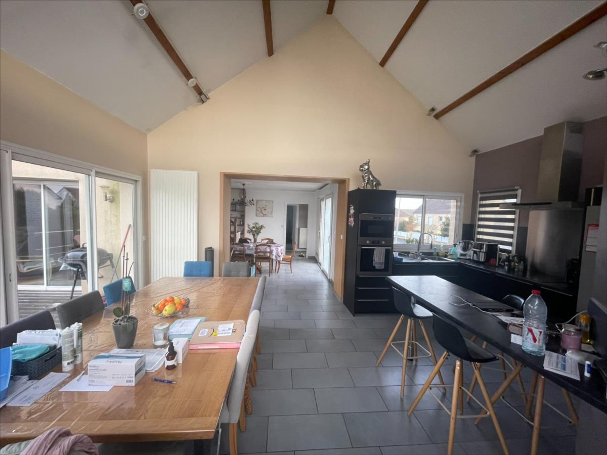 NOUVEAU 'Chez des Notaires à Mes Côtés'A l'entrée de DOUVRES côté CAEN et à 5 min du centre ville.Une maison individuelle de 1975 rénovée avec une extension de 2010.Surface env 110 m², sur un Sous-sol complet ( Garage - atelier - cave - wc- buanderie)Au rez-de-chaussée : salon avec cheminée (env 25 m²), un cuisine aménagée équipée accès terrasse et arrière cuisine (env 30m²), dégagement : 2 chambres, wc, salle d'eau, bureau.A l'étage : 2 chambres mansardées.Chauffage gaze de ville et Ballon d'eau Thermodynamique. Jardin et terrasse 569m².