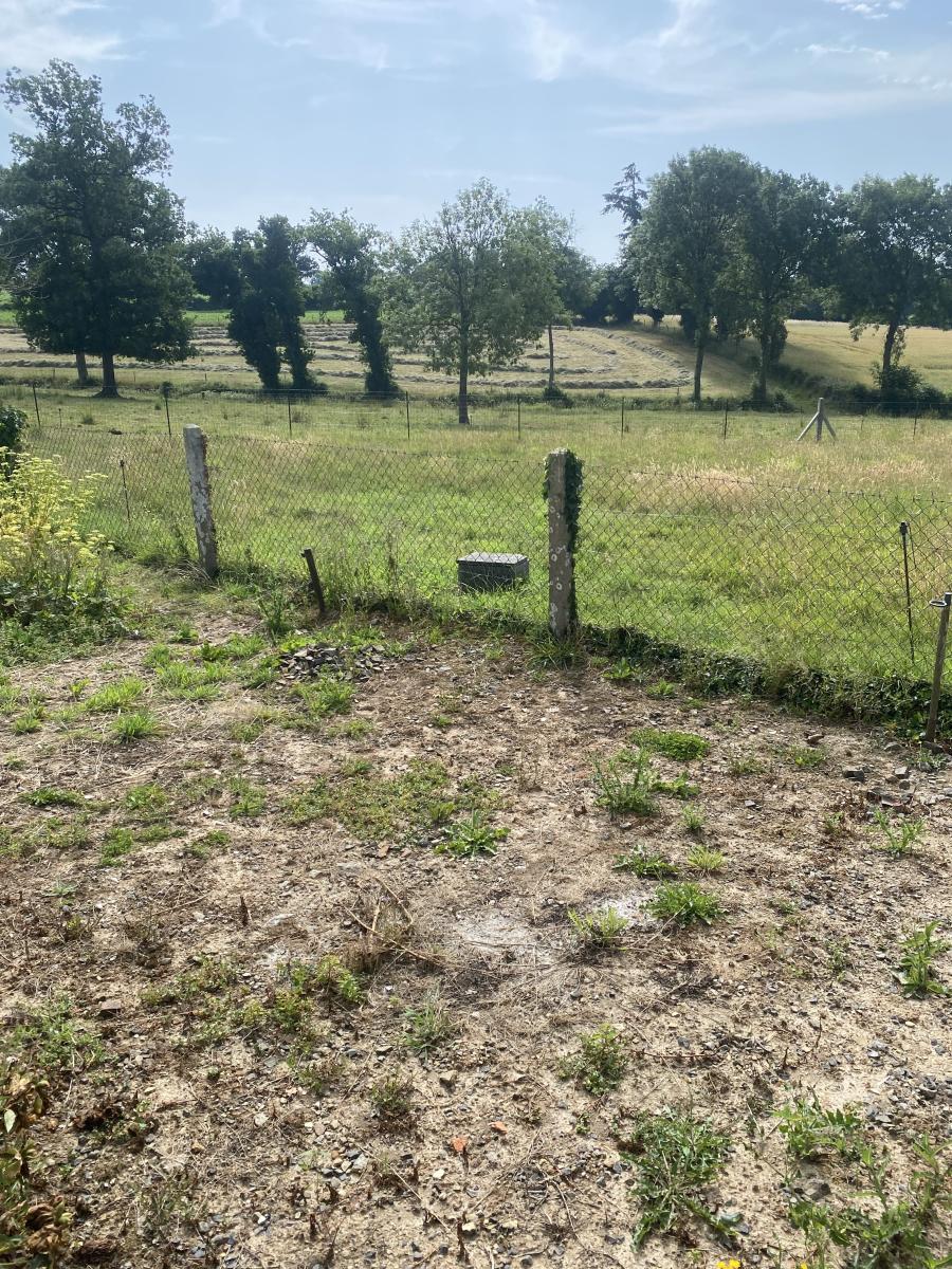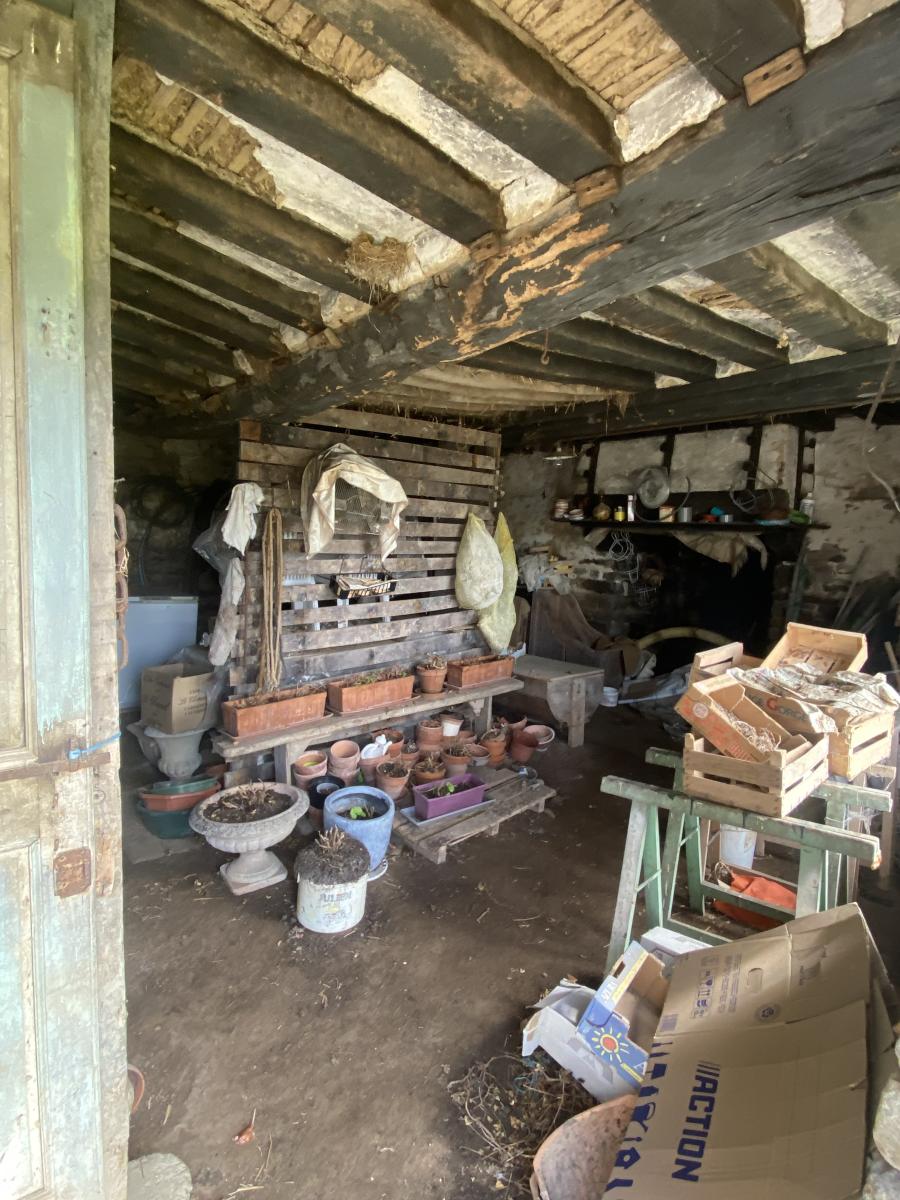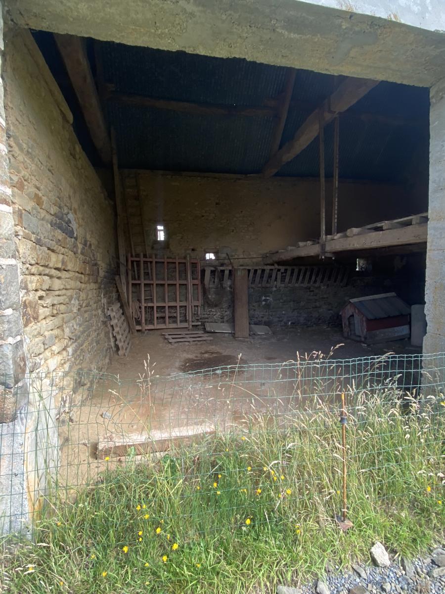 Abri en bois et terrain avec cour.