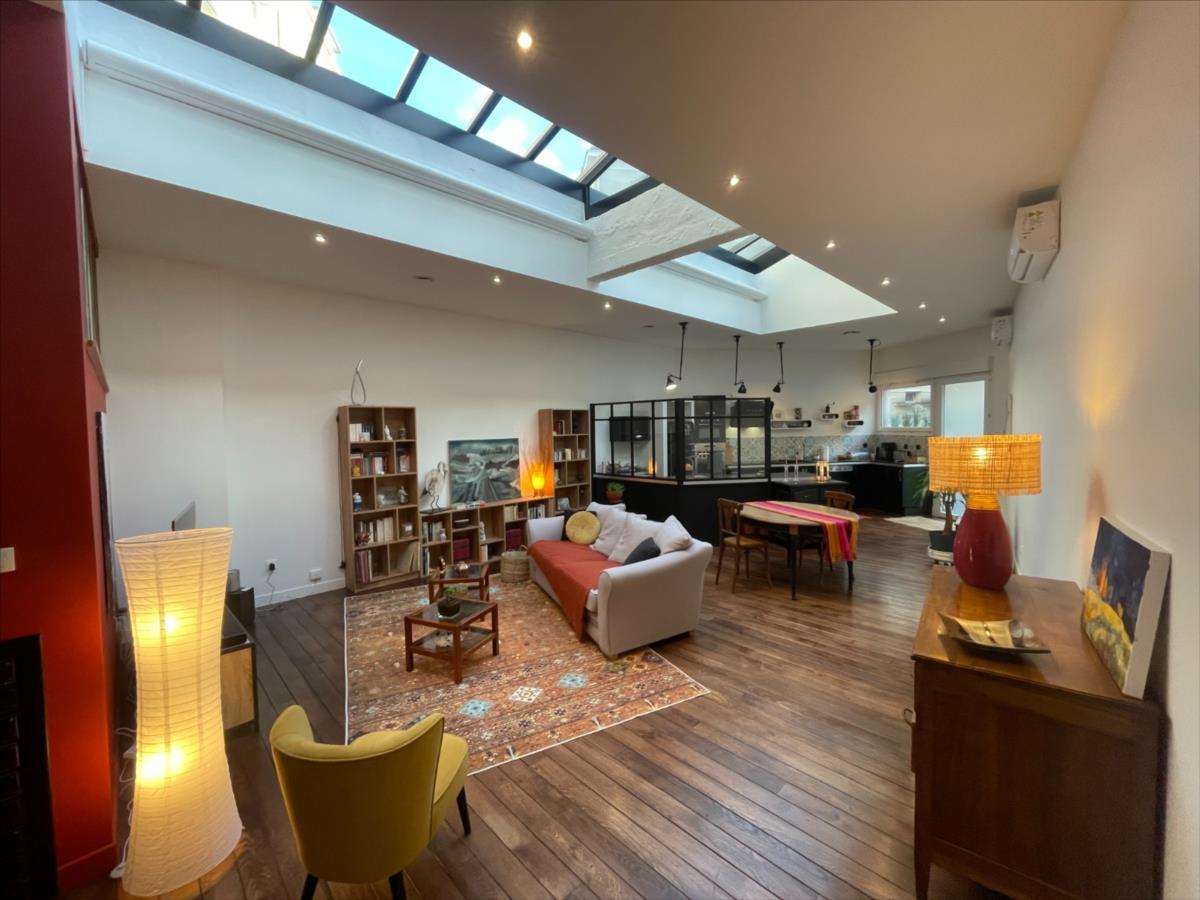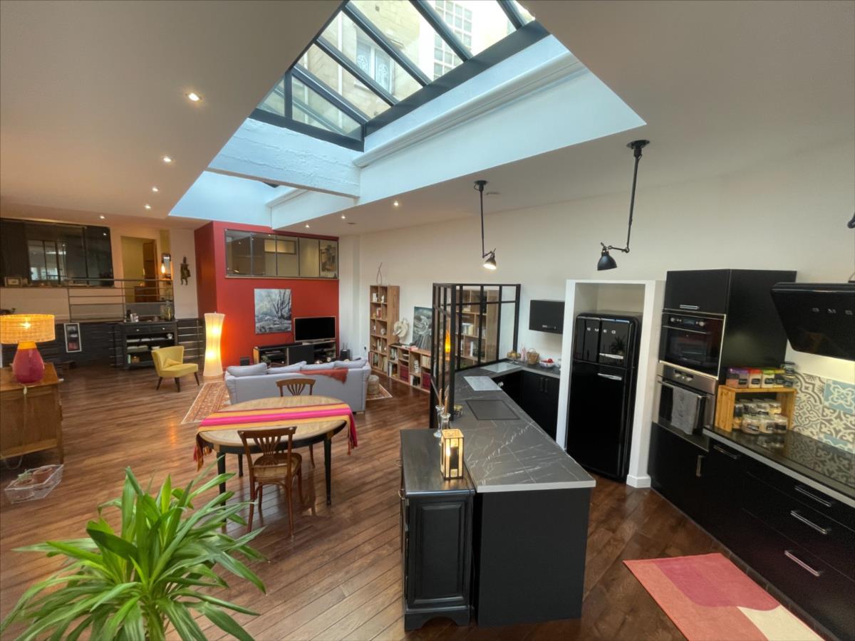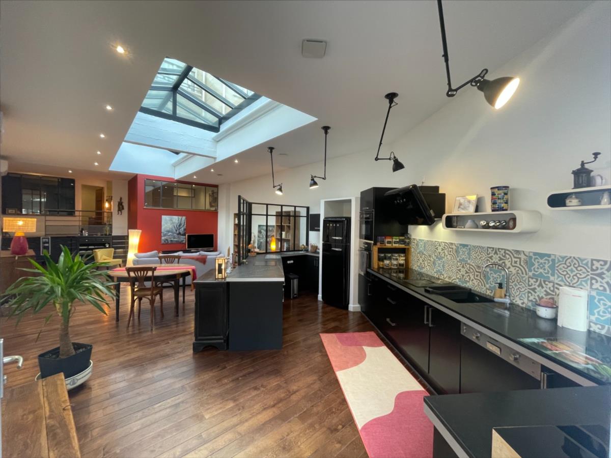 placard (baignoire et douche), bureau ou chambre, chambre 14.24m² + placard, belle réception 66m² avec 3 mètres de hauteur de plafond comprenant: séjour salon avec cuisine aménagée et équipée ouverte avec entrée 2 accès à la cour commune sécurisée. Par accès privatif de l'intérieur de l'appartement grande cave 17m² en sous-sol avec buanderie et évier. belle cuisine aménagée et équipée grande sdb, fenêtres pvc volets électriques. Murs isolés de l'intérieur, sols : carrelage et parquet, chauffage pompe à chaleur individuelle, VMC double flux. Les informations sur les risques auxquels ce bien est exposé sont disponibles sur le site Géorisques : www. georisques. gouv. fr