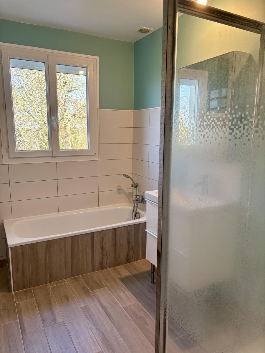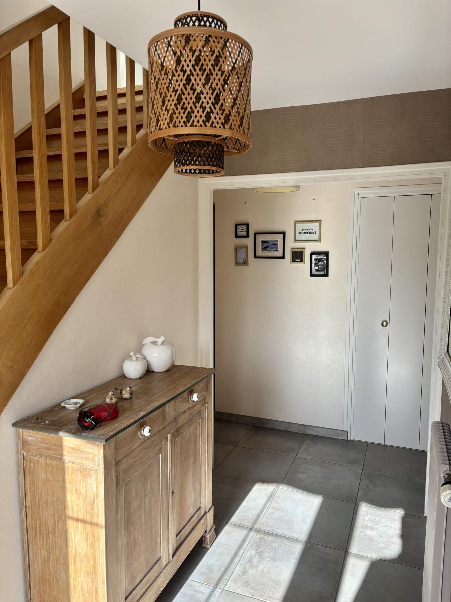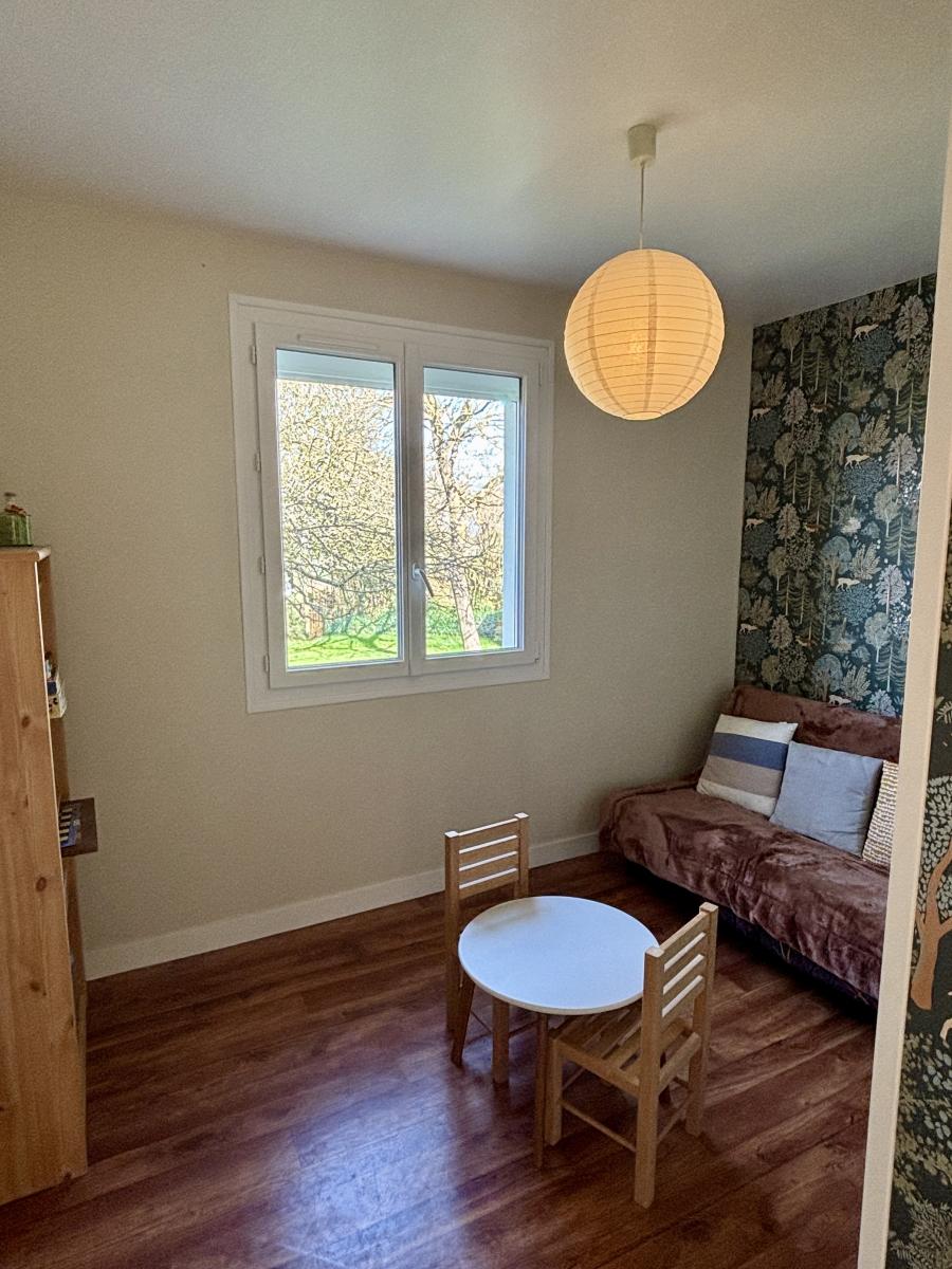 - Au rez-de-chaussée : entrée, pièce de vie en L avec cuisine aménagée et équipée récente, 3 chambres, une salle d'eau et WC.