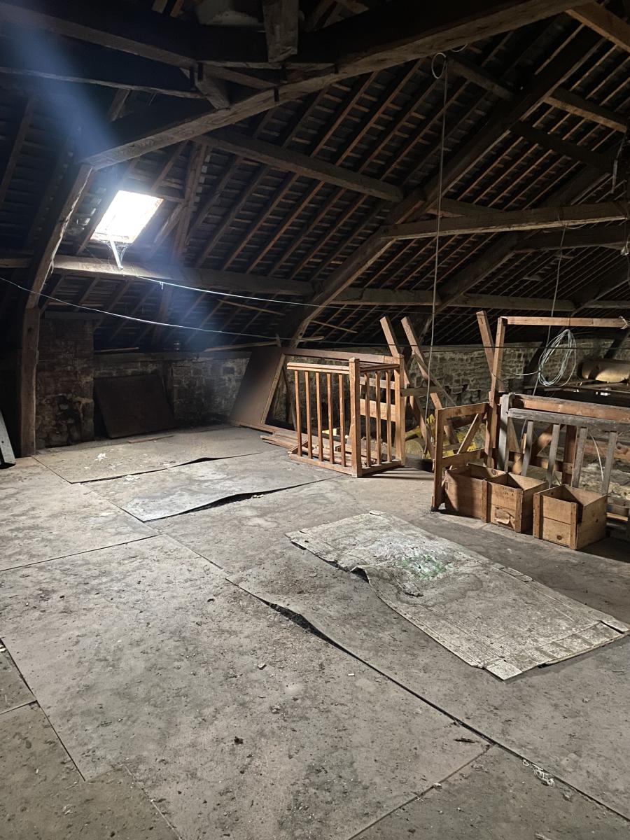 2. Un atelier de 168m² avec coin bureau, débarras et WC. Grenier aménagé au-dessus.
