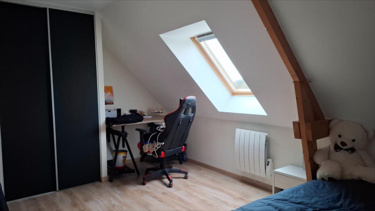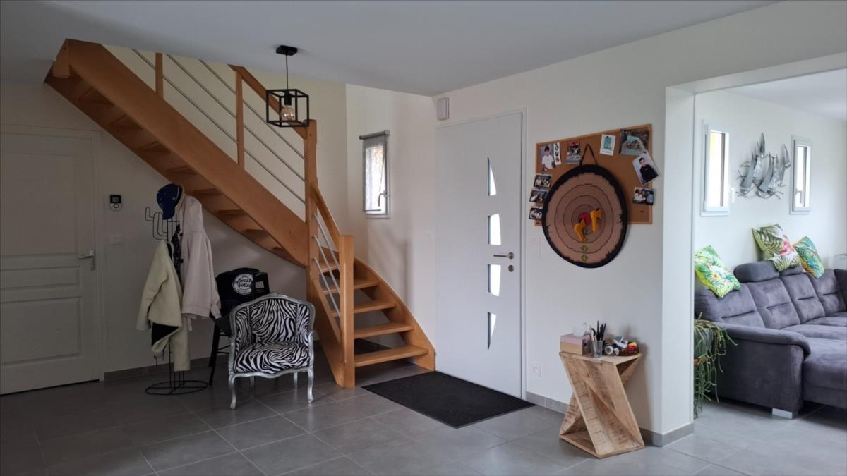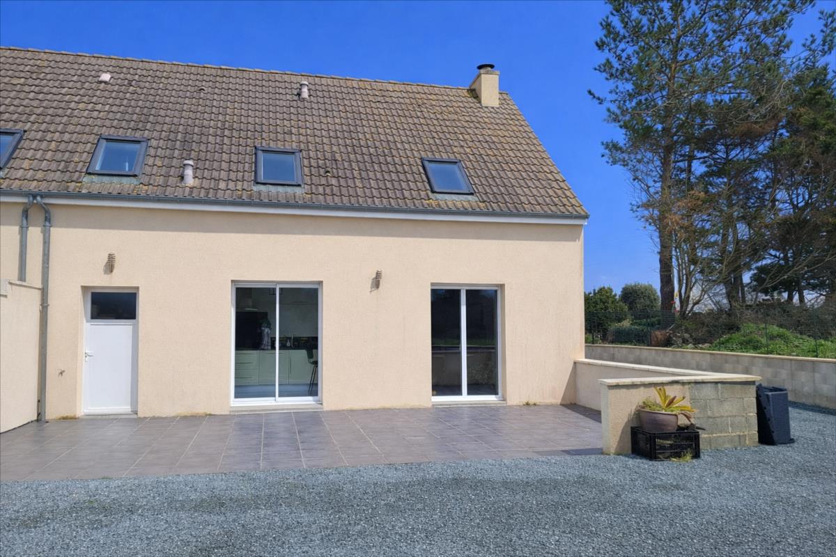 A proximité de la mer, des commerces et des écoles et collèges :Pavillon récent (2014) couvert en ardoise, mitoyen par le garage, comprenant :. au rez-de-chaussée : entrée, séjour avec en retour cuisine ouverte aménagée et équipée, salon, WC.. A l'étage : palier desservant : trois chambres, salle d'eau avec WC.Garage attenant.Cour bitumée devant, jardin sur l'arrière.Le tout pour une surface cadastrale de 958m².