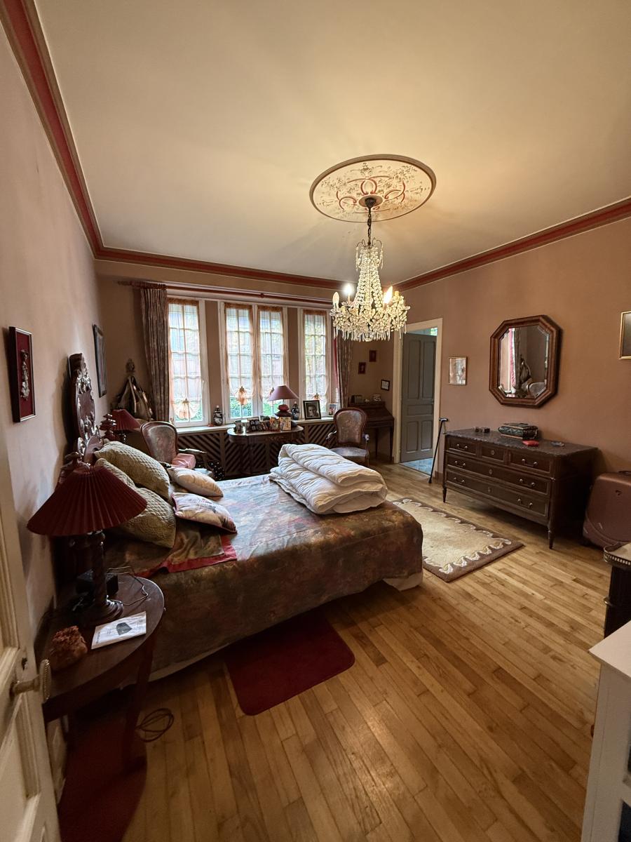 Idéalement situé, Maison de caractère comprenant : - Au rez de chaussée, entrée/pièce de vie avec poêle à bois, une cuisine aménagée, dégagement avec rangements, trois chambres avec chacune une salle de bains ou salle d'eau, un wc. - Grenier au dessus. - Deux pièces donnant sur balcon avec chacune une salle d'eau et un wc sur le côté de la maison. - Quatre garages libres. - Terrain clos de 792m².