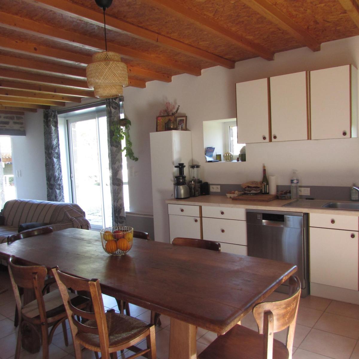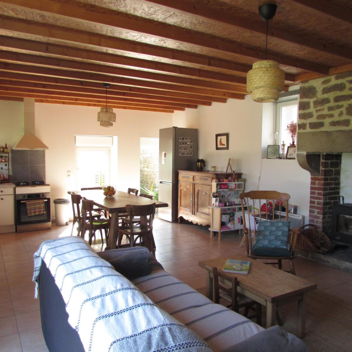 Maison en pierre comprenant :  -  Au rez-de-chaussée, une entrée, séjour-salon-cuisine ouverte, buanderie, salle-d 'eau , WC ; -  A l'étage, trois chambres, salle d'eau, WC. Garage avec grenier. Carport sur un terrain de 835m².