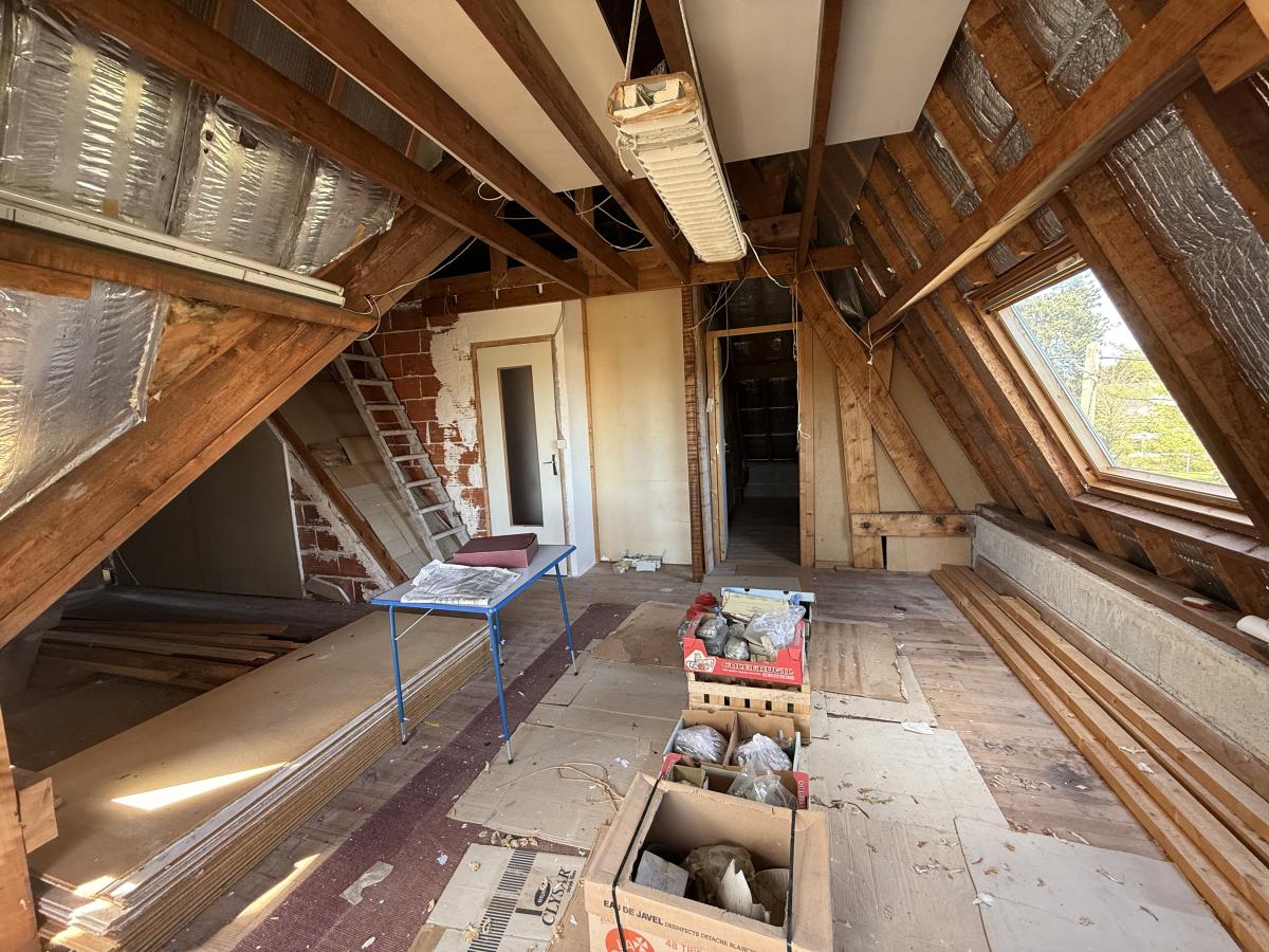 à l'étage: palier desservant deux chambres et deux greniers (possibilité de créer salle d'eau et autre chambre côté balcon ).