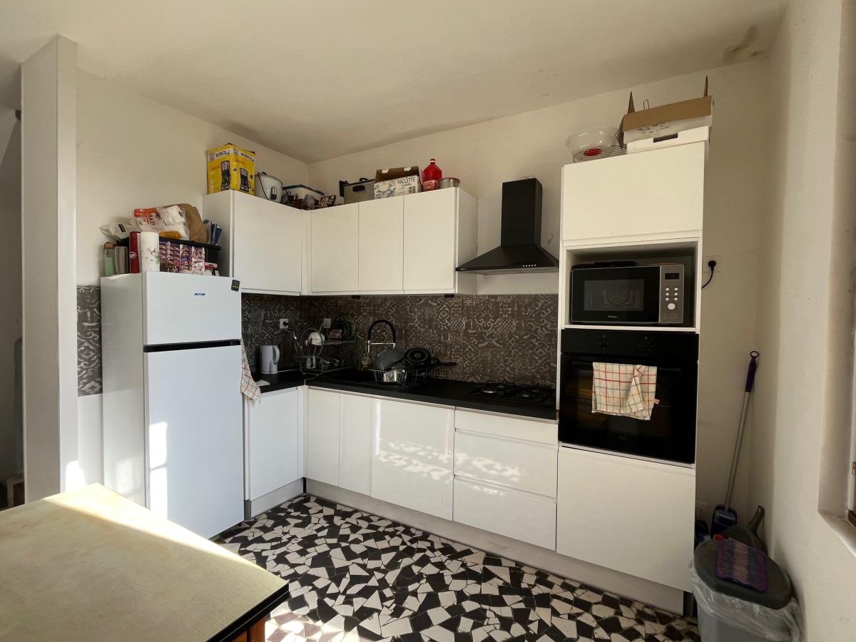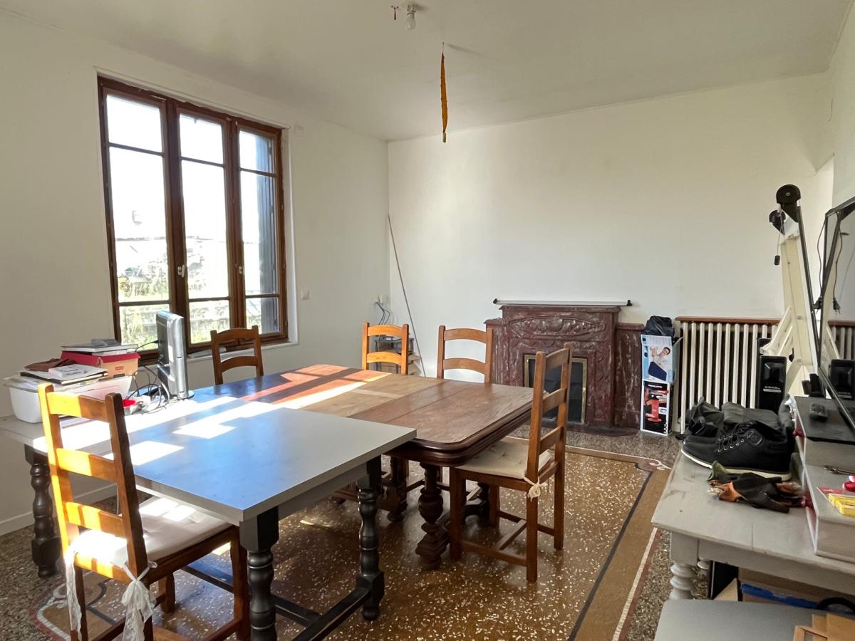 Une maison d'environ 100 m² comprenant : Entrée, cuisine aménagée-équipée, salle à manger. Au premier étage : palier desservant 2 chambres, wc. Au deuxième étage : une grande chambres, salle d'eau avec wc. Un garage d'environ 30 m² et une cave complètent ce bien. Le tout sur un terrain de 423 m². Honoraires de négociation à charge vendeur