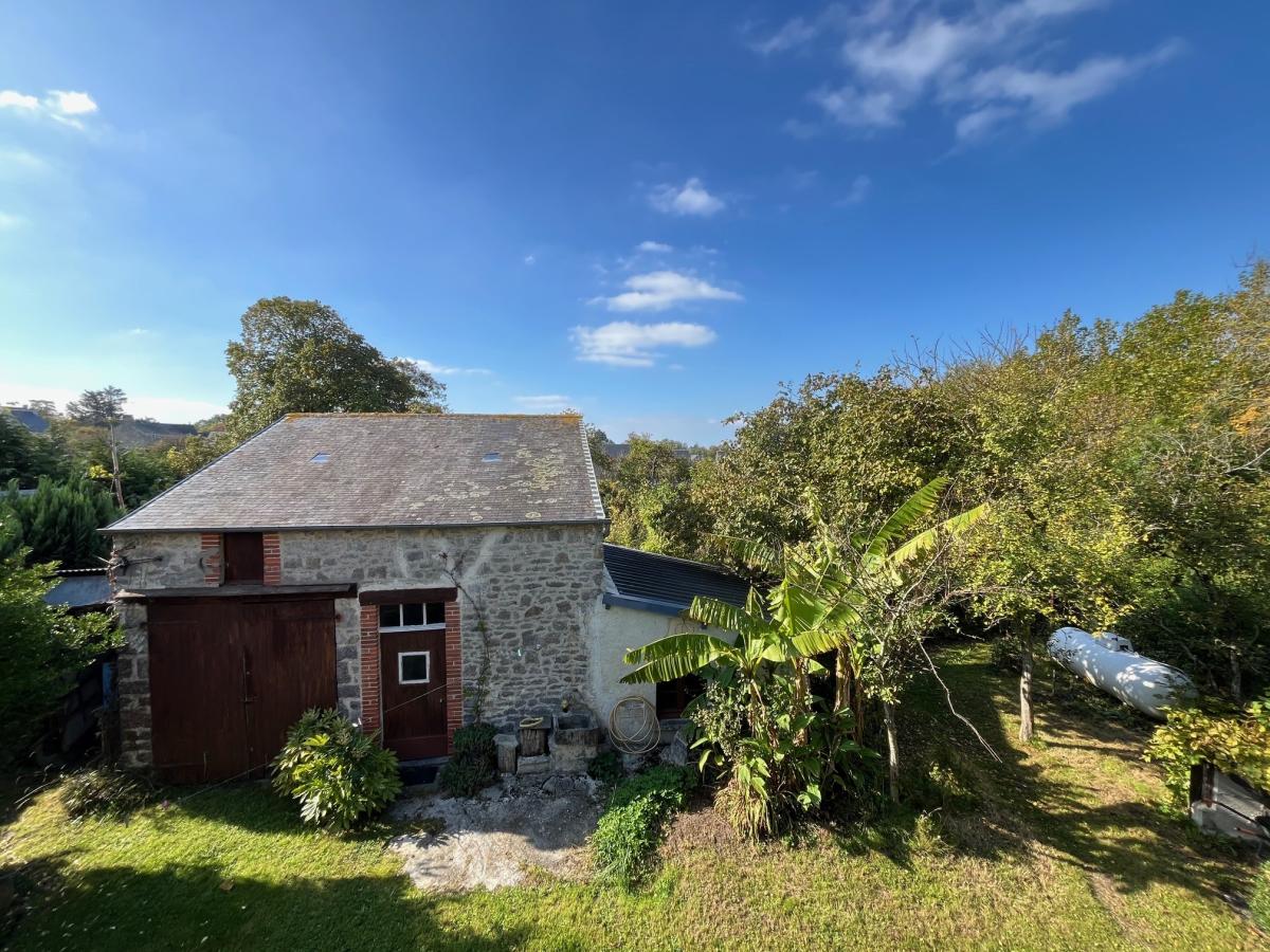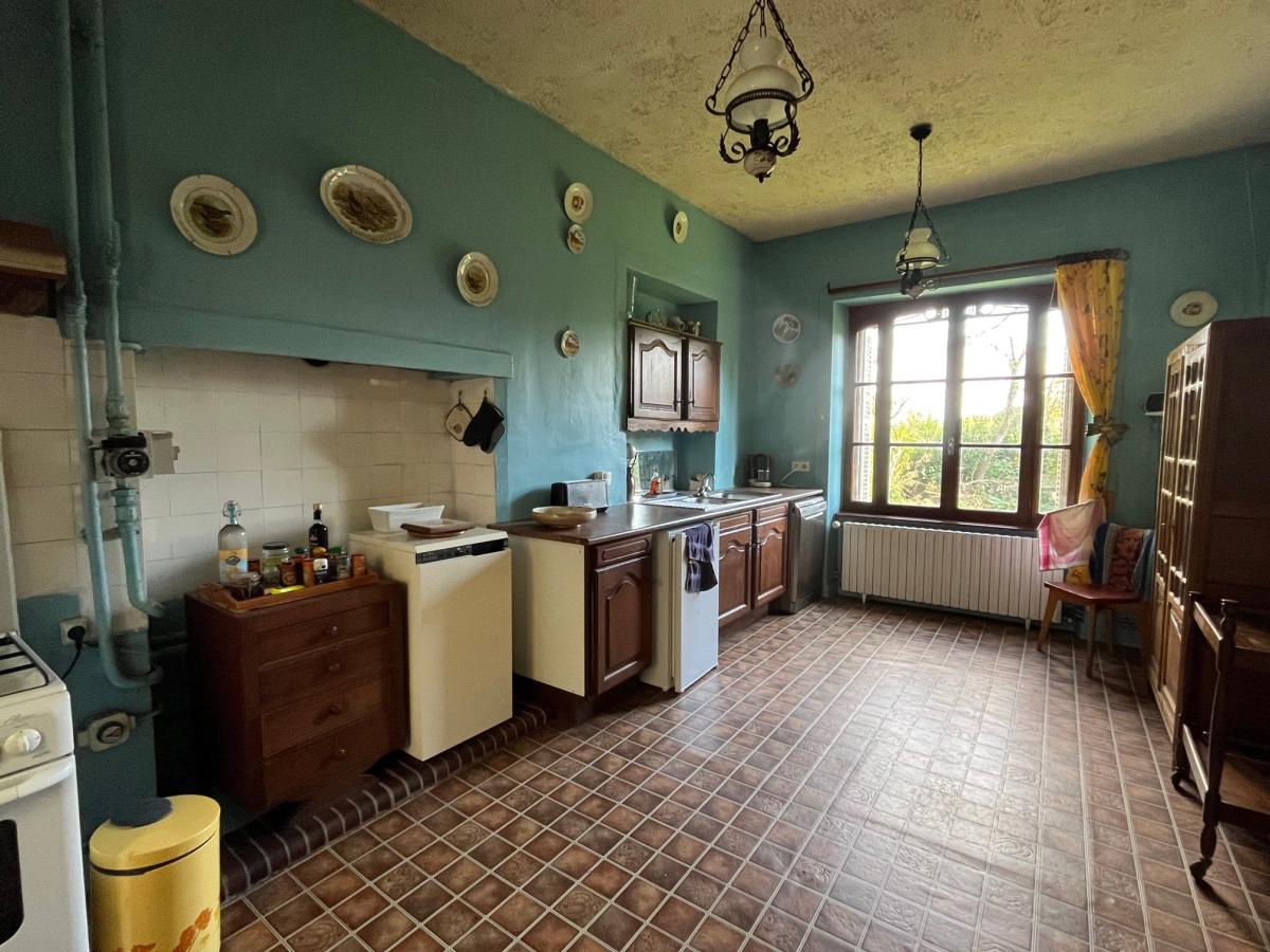 entrée, cuisine, véranda à la suite avec douche et wc, salon avec poêle à bois.
