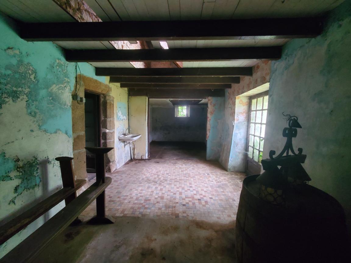 Dans un environnement calme, maison en pierres à rénover comprenant : Au rez-de-chaussée : cuisine, salle, chambres, couloir, cellier/buanderie en appentis Grenier aménageable au-dessus Grange attenante (avec son propre compteur électrique) et grenier. Une autre grange en pierres indépendante, une autre dépendance et un hangar, terrain autour