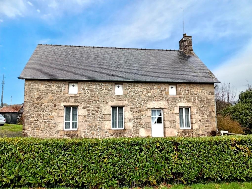 Pièce de vie avec coin cuisine et cheminée, couloir, deux chambres, salle d'eau, wc