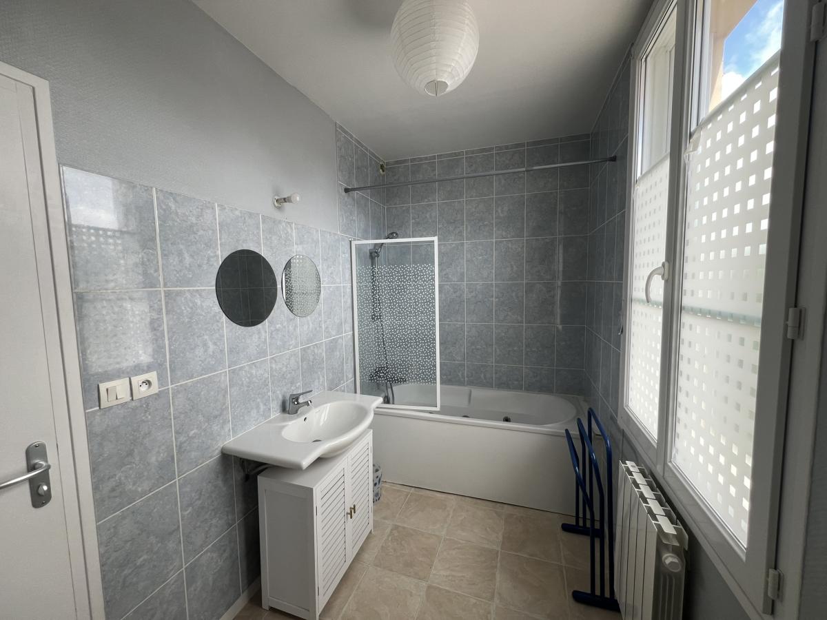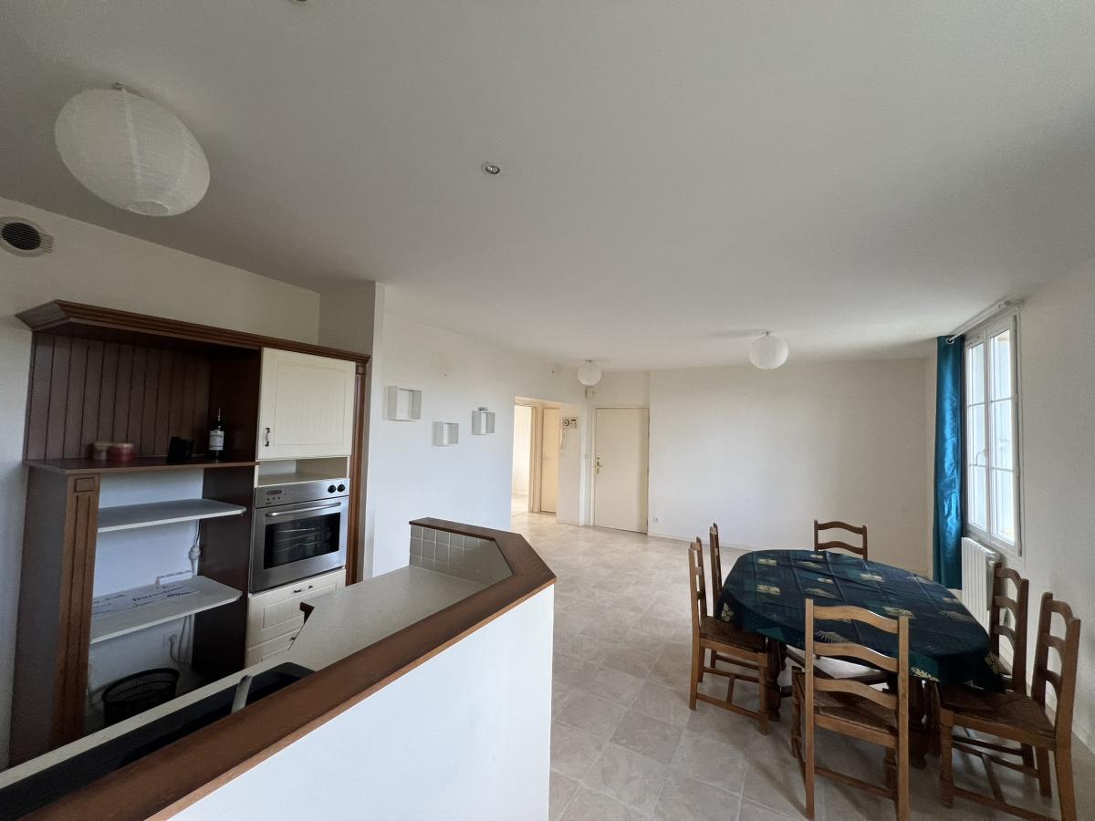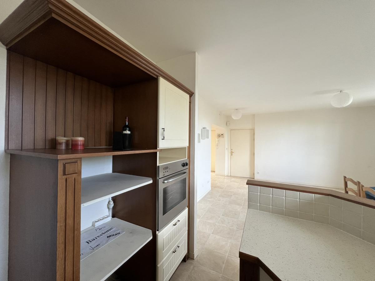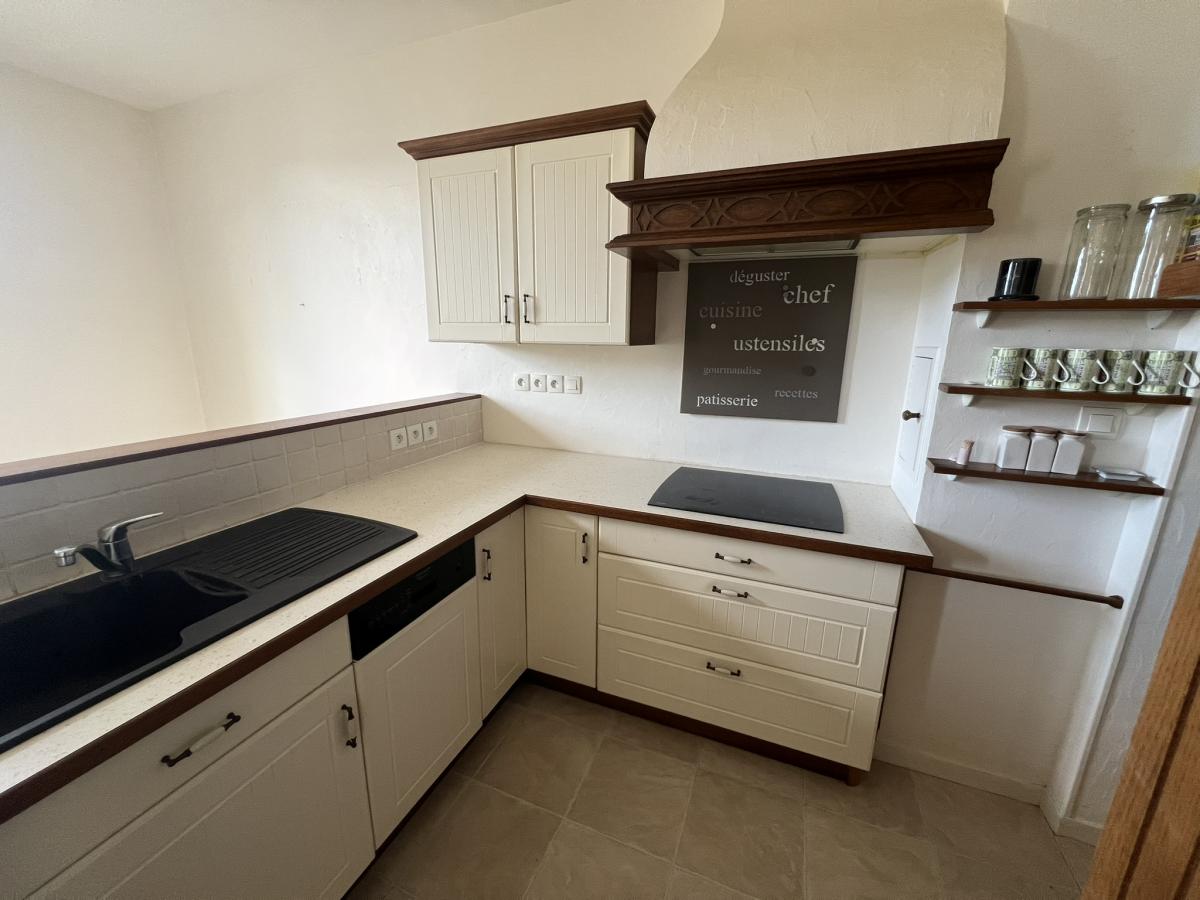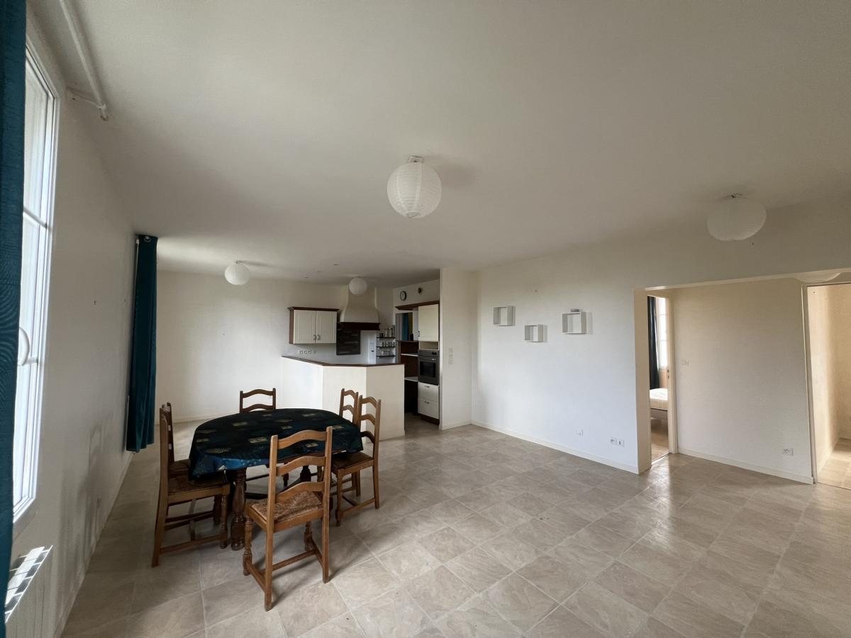 Barneville, en centre bourg, appartement en rez de chaussée comprenant : grand séjour avec cuisine ouverte équipée, arrière-cuisine/buanderie avec placard, deux chambres dont une avec placard, salle de bains, WC avec lave-mains.