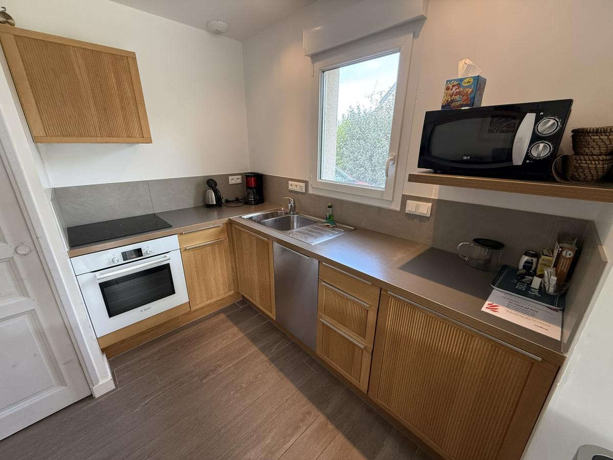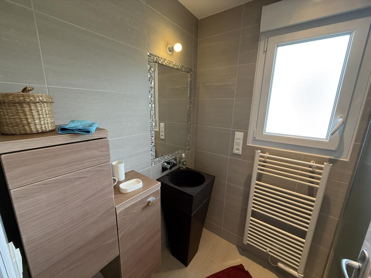 - Au rez de chaussée: séjour avec cuisine ouverte équipée, dégagement, buanderie, salle d'eau, WC.