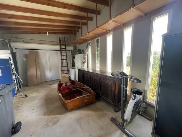 RDC: entrée avec vestiaire, garage, séjour, cuisine, véranda, arrière cuisine, chaufferie, WC et douche, deux chambres avec placard et une salle de bains avec WC.