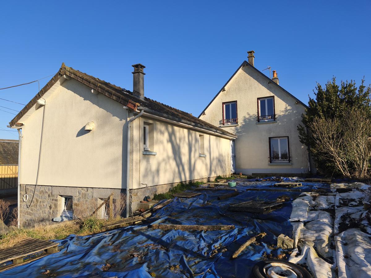 En campagne, à proximité du bourg, ensemble immobilier composé d'une maison de 4 pièces principales et diverses dépendances, sur 4ha 80 de terrain.