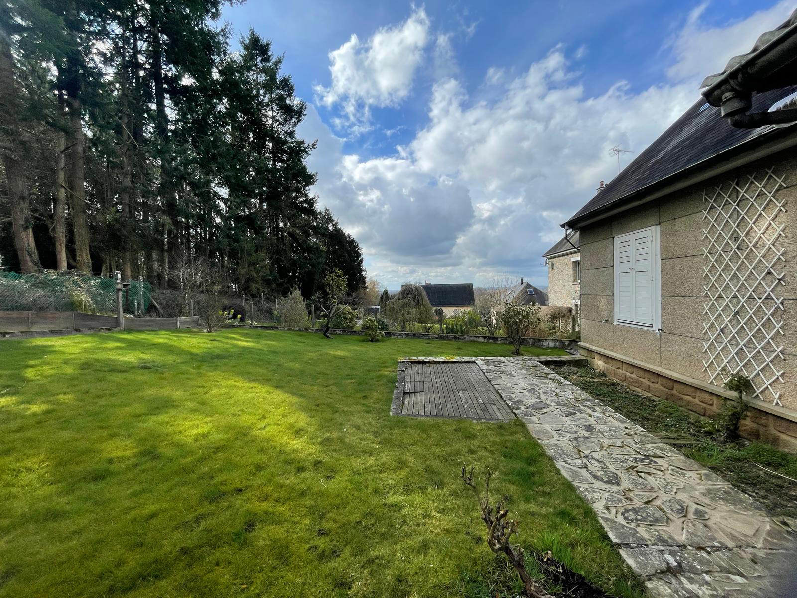 À Domfront-en-Poiraie (61700), se dresse un pavillon d’habitation établi sur un soubassement de pierre et coiffé d’un toit d’ardoises.