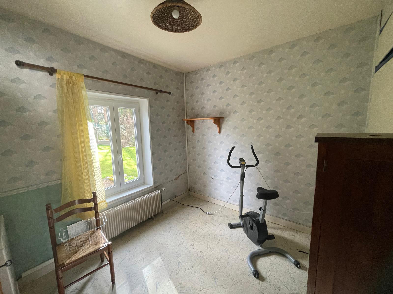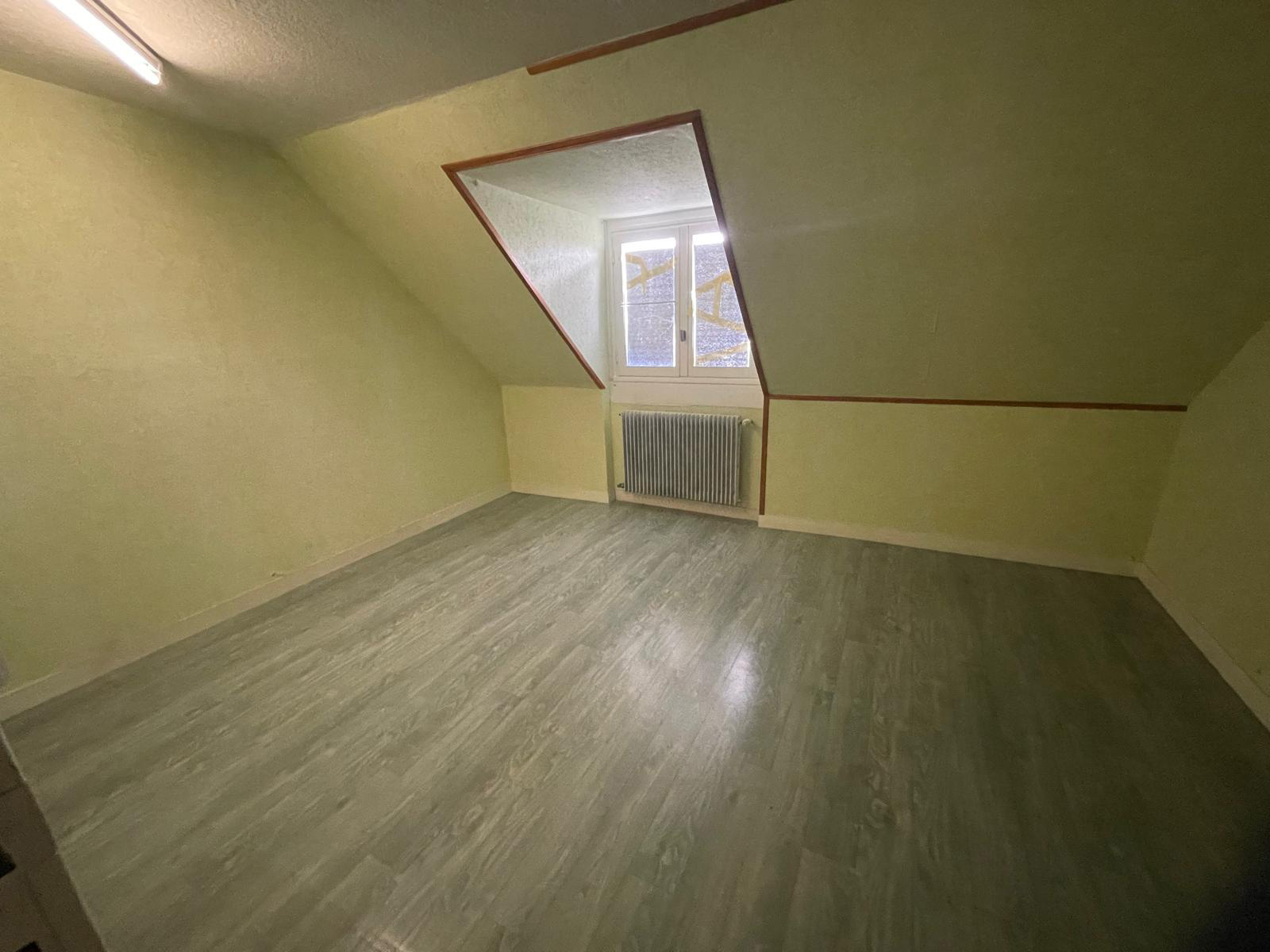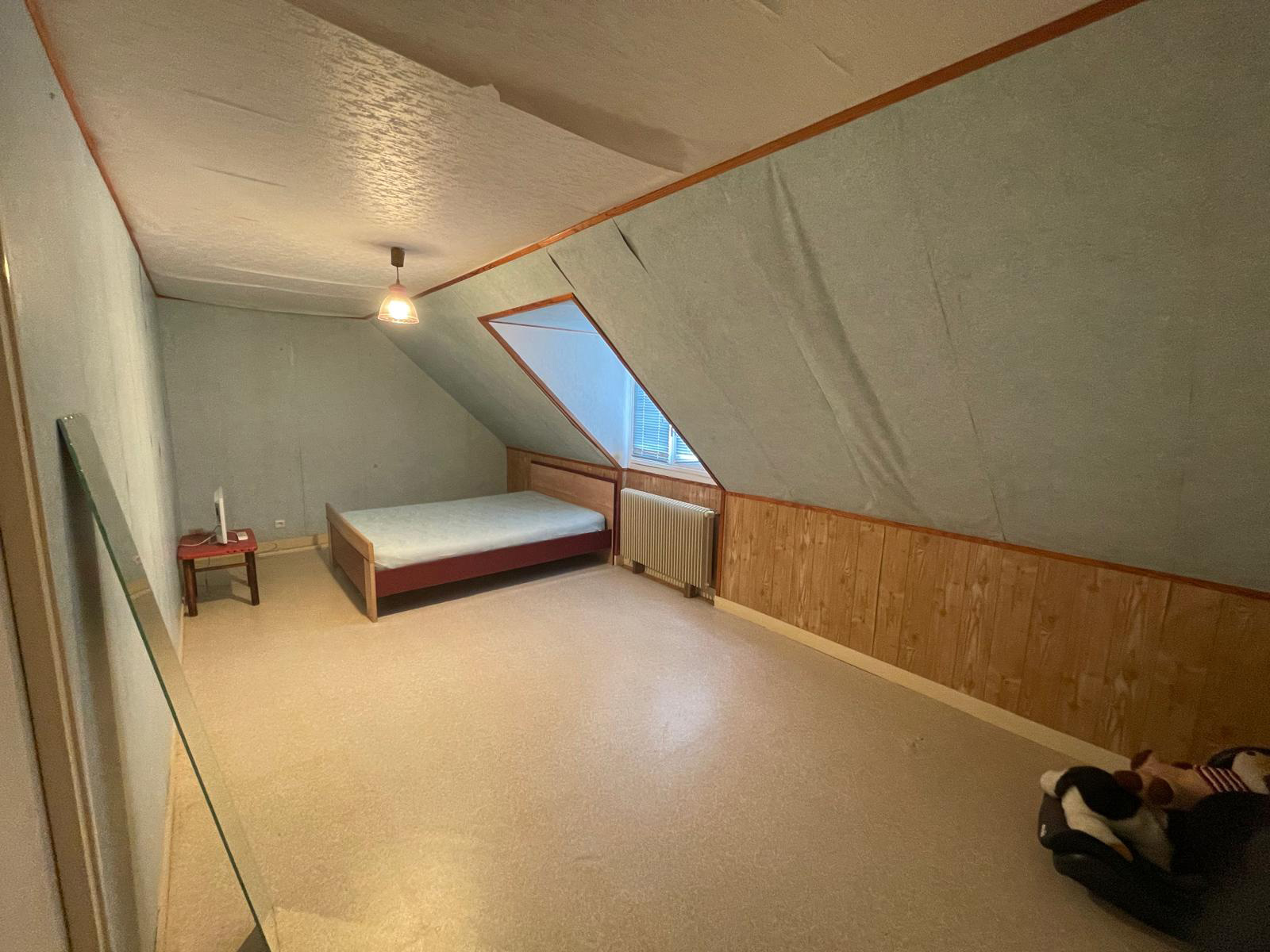 À l’étage, deux chambres mansardées de 17,3 m² et 12,4 m², auxquelles s’ajoute un débarras, composent le niveau supérieur.