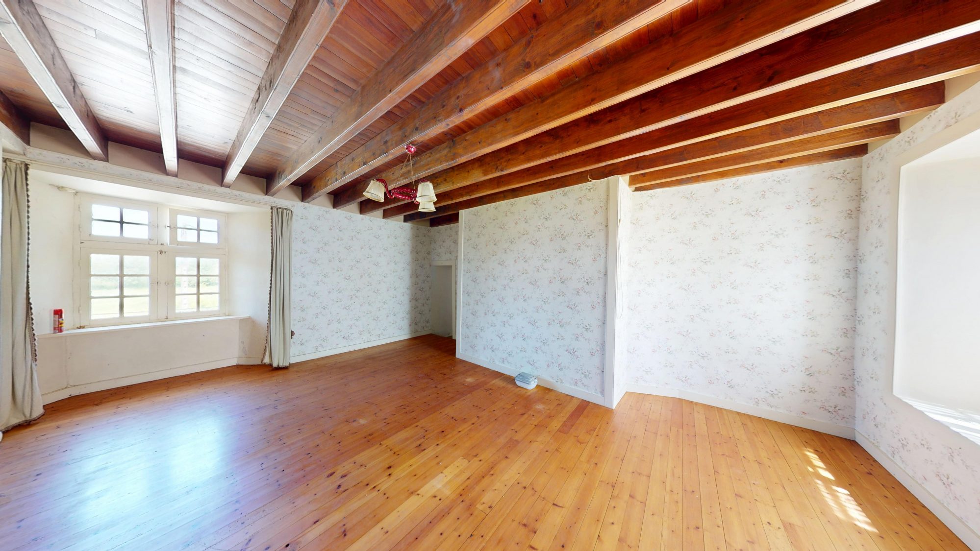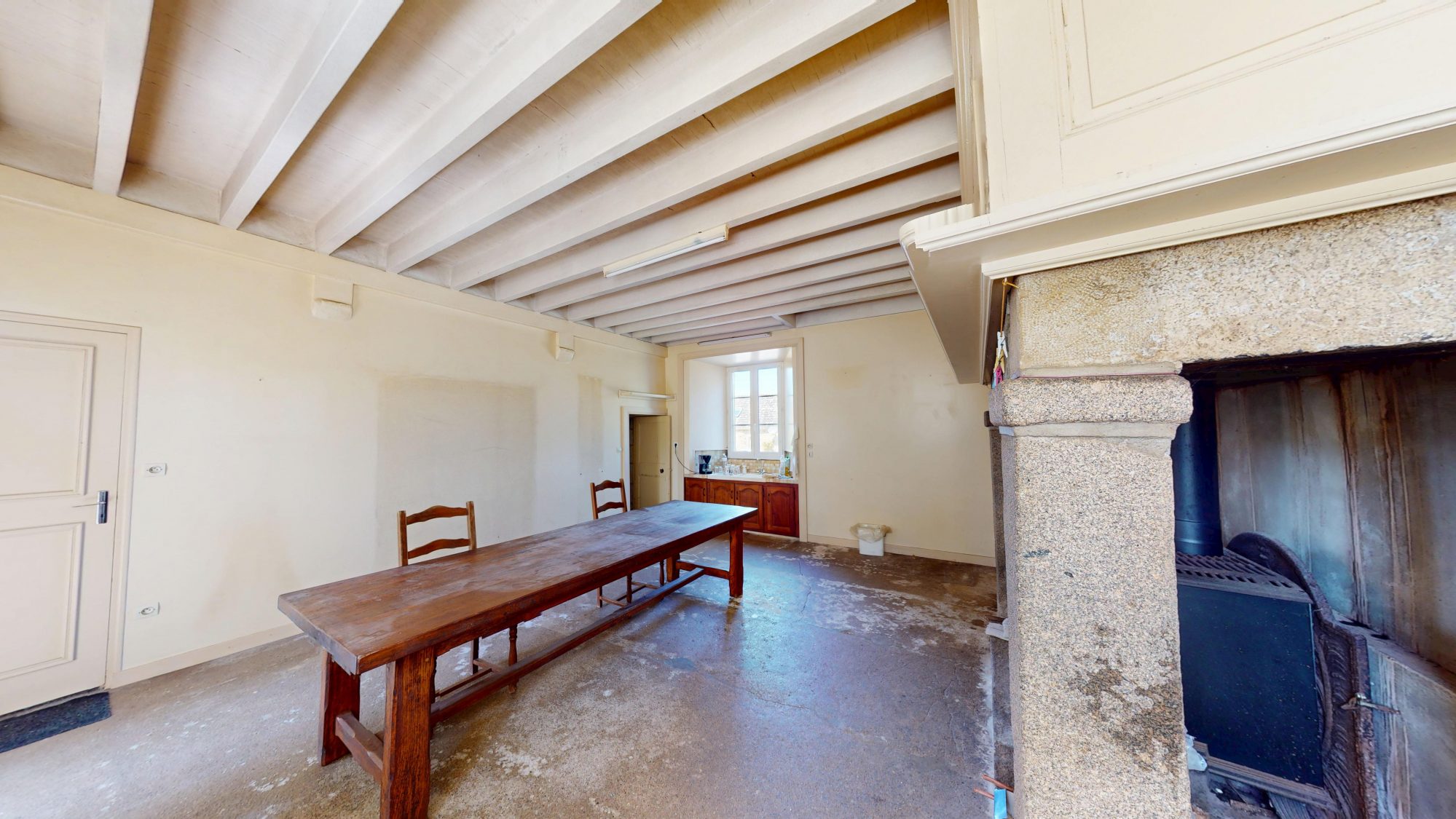 Sur un terrain de 3965 m², maison ancienne à rénover comprenant : - au rez-de-chaussée : séjour avec cheminée, cellier, salle d'eau, WC, débarras ; - au 1er étage : couloir, trois chambres ; - au 2ème étage : greniers. Huisseries PVC et bois. Pas de chauffage. Assainissement individuel à mettre aux normes. Anciennes étables en retour d'équerre (60 m²). Autre bâtiment contenant 6 garages (74 m²). Hangar sur l'arrière (235 m²). Cour devant et jardin à l'arrière Les informations sur les risques auxquels ce bien est exposé sont disponibles sur le site Géorisques : georisques.gouv.fr