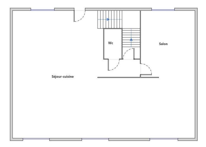 Au rez-de-chaussée : une entrée sur la cuisine ouverte, salon séjour de 43.60 m², WC séparé et accés au sous-sol complet.