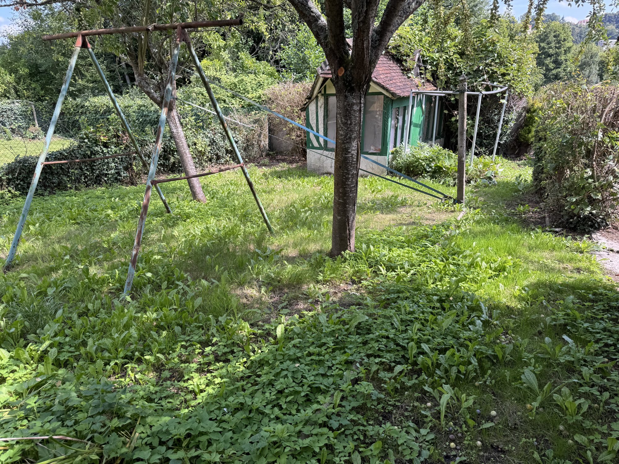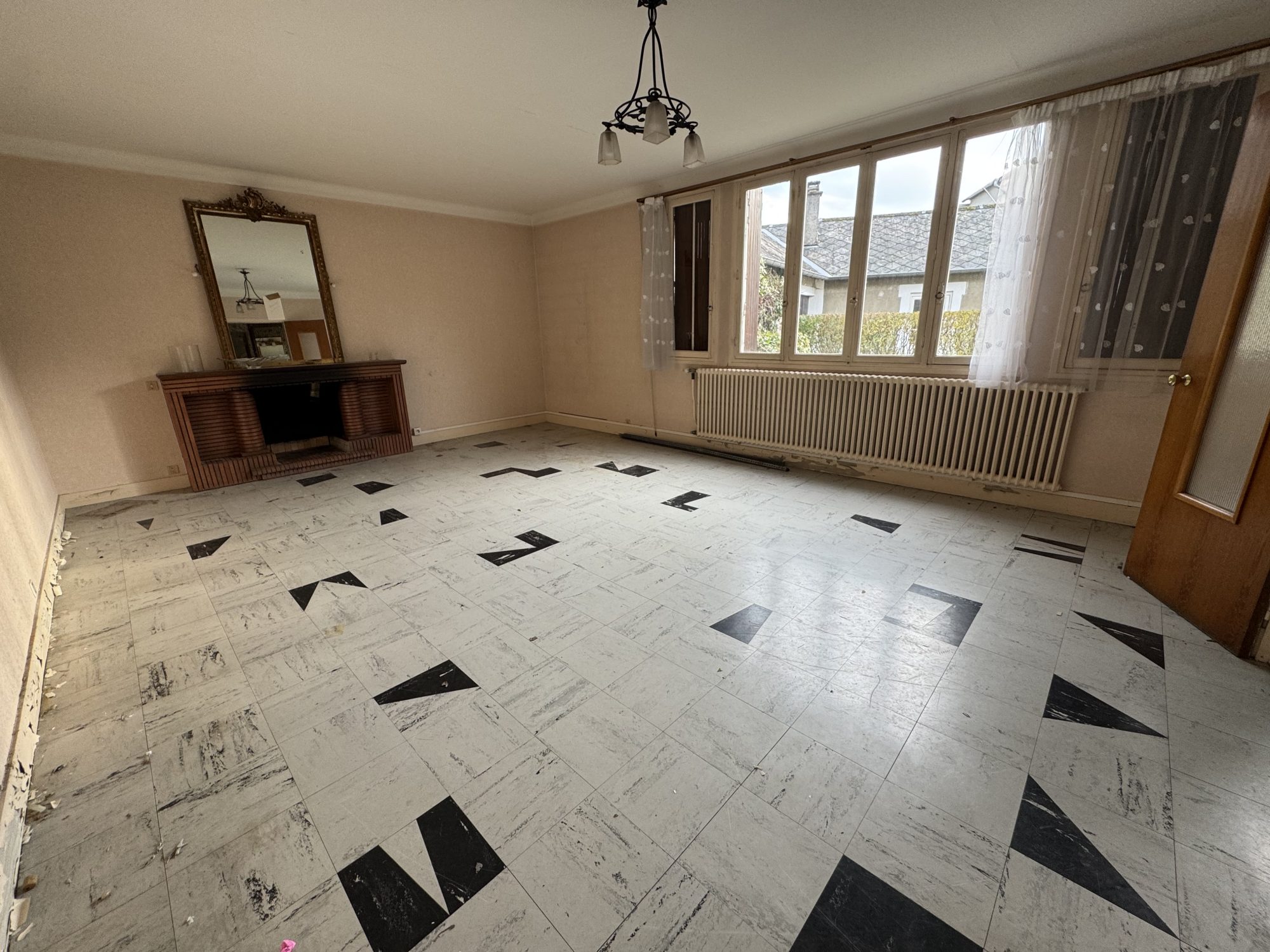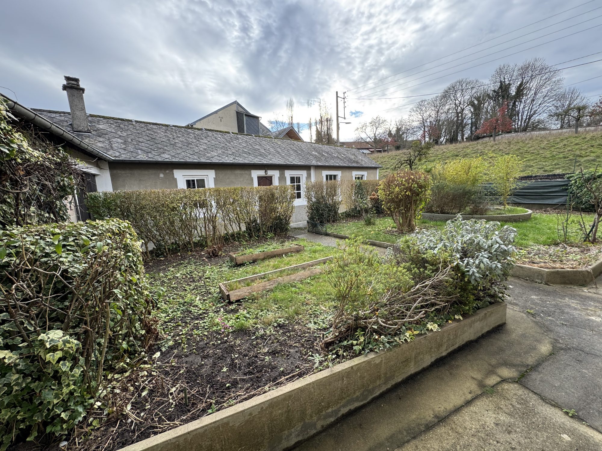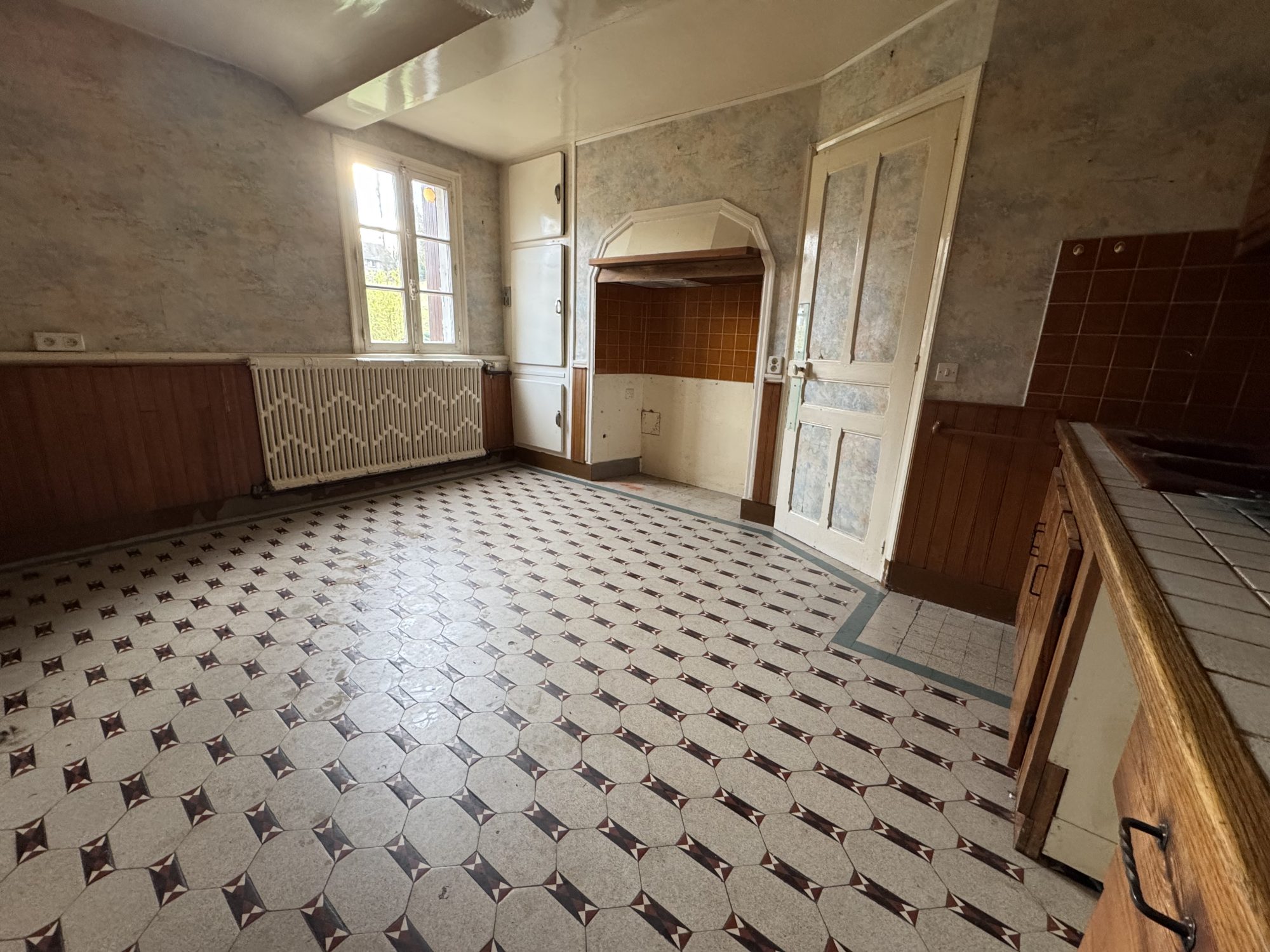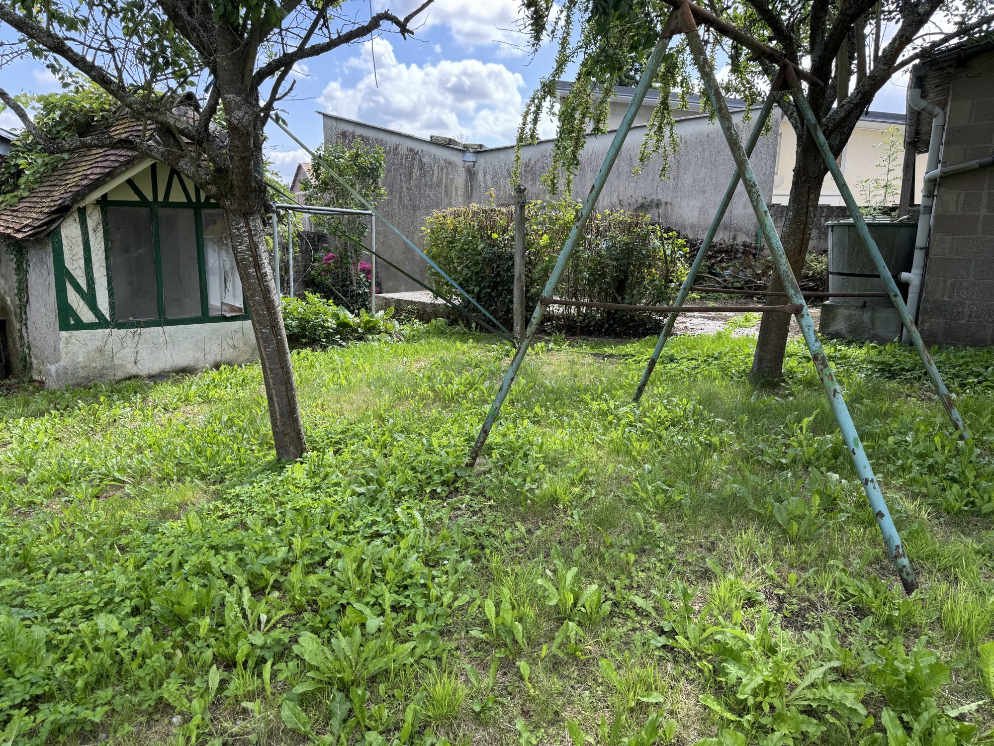 RDC: entrée, séjour de 31m², cuisine, salon, chambre, salle d'eau, wc, débarras et garage.