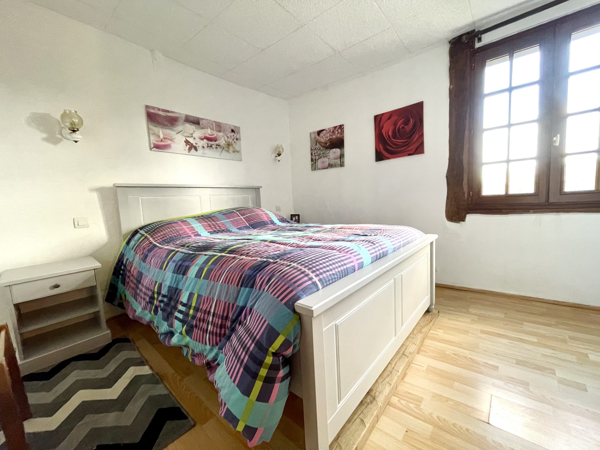 Dans bourg avec commerces . Au calme Maison normande avec potentiel comprenant Au rez-de-chaussée cuisine avec cheminée et poêle, séjour et garage A l'étage avec deux escaliers séparés , d'un côté deux chambres et wc et de l'autre côté deux chambres , salle d'eau et wc. Terrain de 550 m²