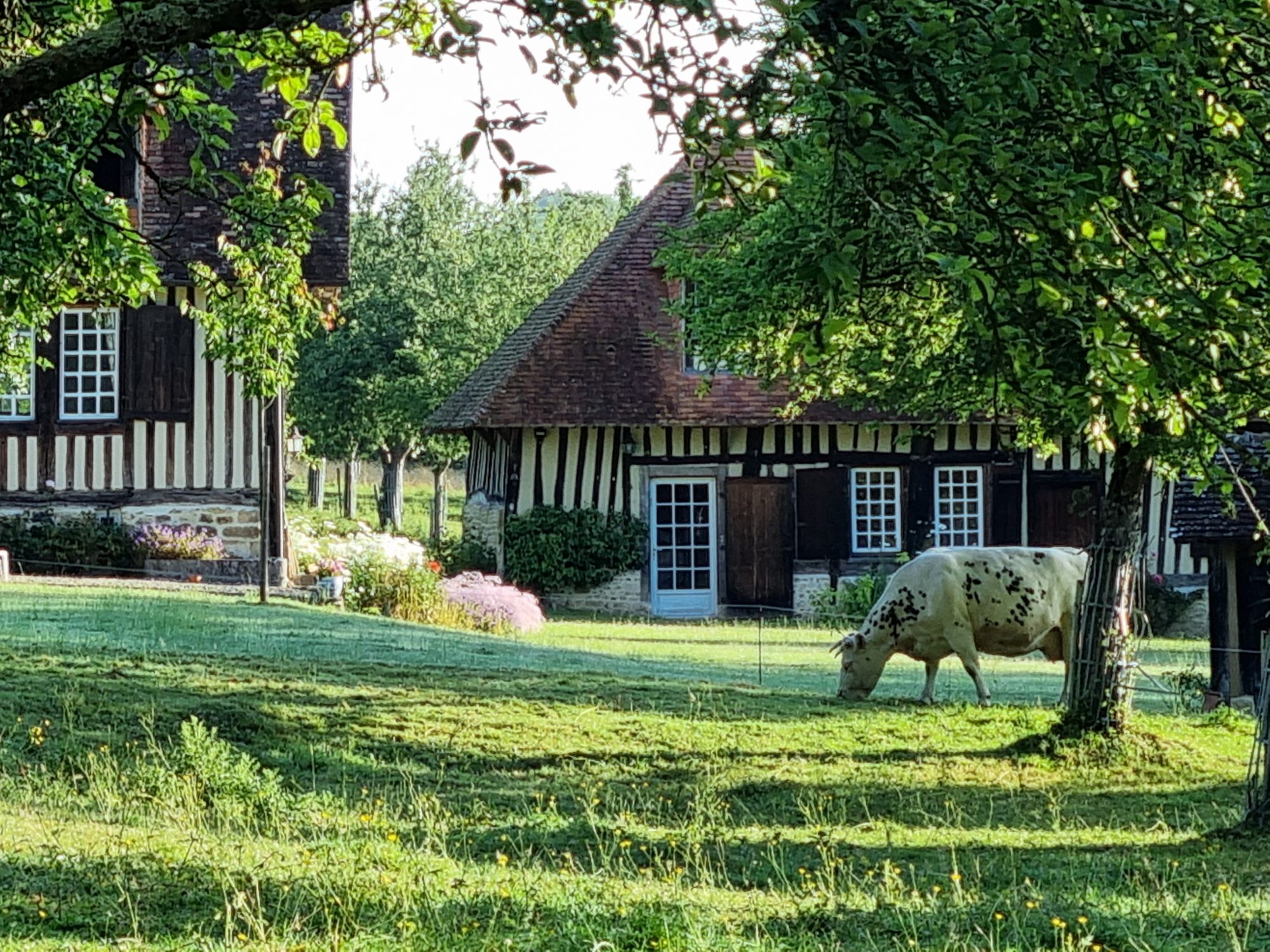Belle propriété typiquement augeronne édifiée sur un terrain de 9,2ha (herbage, verger) avec accès à la rivière composée d’une maison principale datant du 16/17ème d’environ 200m² avec 4 chambres, une maison d’amis de 130m² avec véranda et 3 chambres et d’une maison de gardien louée de 90m² avec 2 chambres.